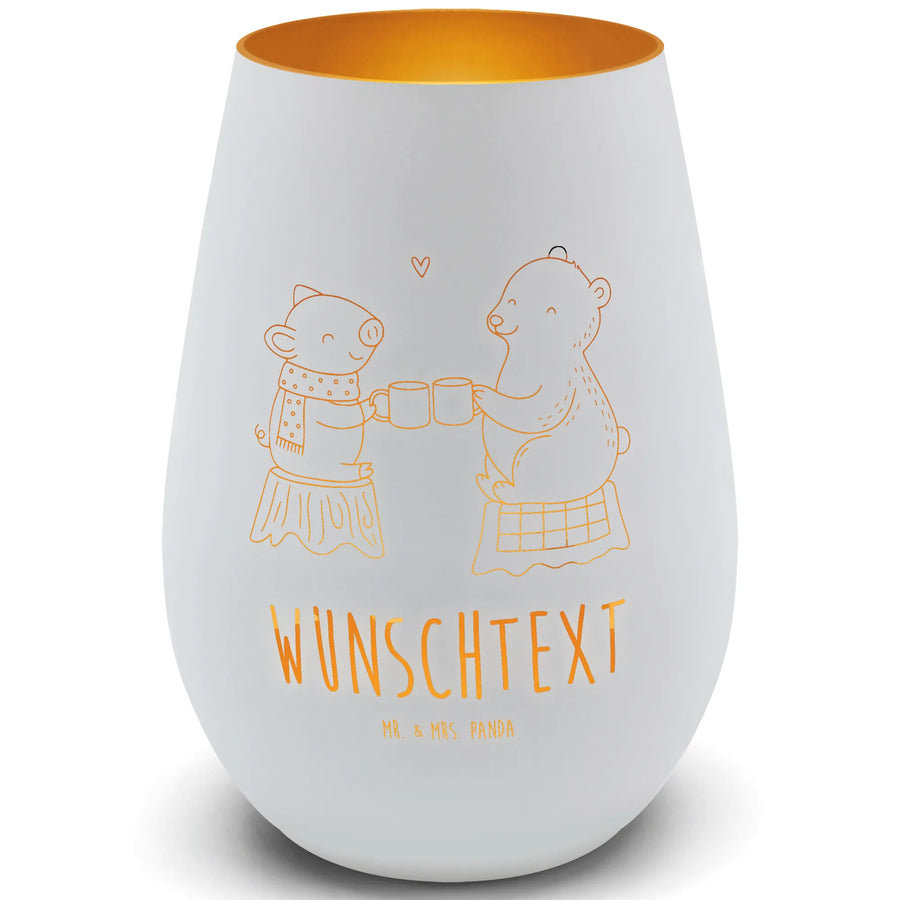 Das personalisierte Gold Windlicht von Mr. & Mrs. Panda bringt Wärme und Stil in jedes Zuhause. Mit einer Höhe von 120 mm und einem Durchmesser von 85 mm ist es perfekt für deine Teelichter. Das hochwertige Glas, das sowohl innen als auch außen lackiert ist, sorgt nicht nur für ein schönes Design, sondern schützt auch die Flamme vor Wind. Personalisiere das Windlicht mit deinem eigenen Namen oder einem besonderen Spruch und mache es zu einem einmaligen Geschenk für Freunde, Familie oder für dich selbst! Erlebe die warmen und romantischen Momente, die dieses Windlicht in deine Umgebung bringt. Es ist hitzebeständig und damit ideal für den Einsatz in verschiedenen Umgebungen. Die durch Erhitzung sichtbaren Motive von Mr. & Mrs. Panda verleihen dem Windlicht einen besonderen Charme. Denke daran, dass das Windlicht sanft von Hand gewaschen werden sollte, kann aber auch in der Spülmaschine gereinigt werden. Ein Teelicht ist im Lieferumfang enthalten, um sofort dein Zuhause gemütlich zu gestalten.