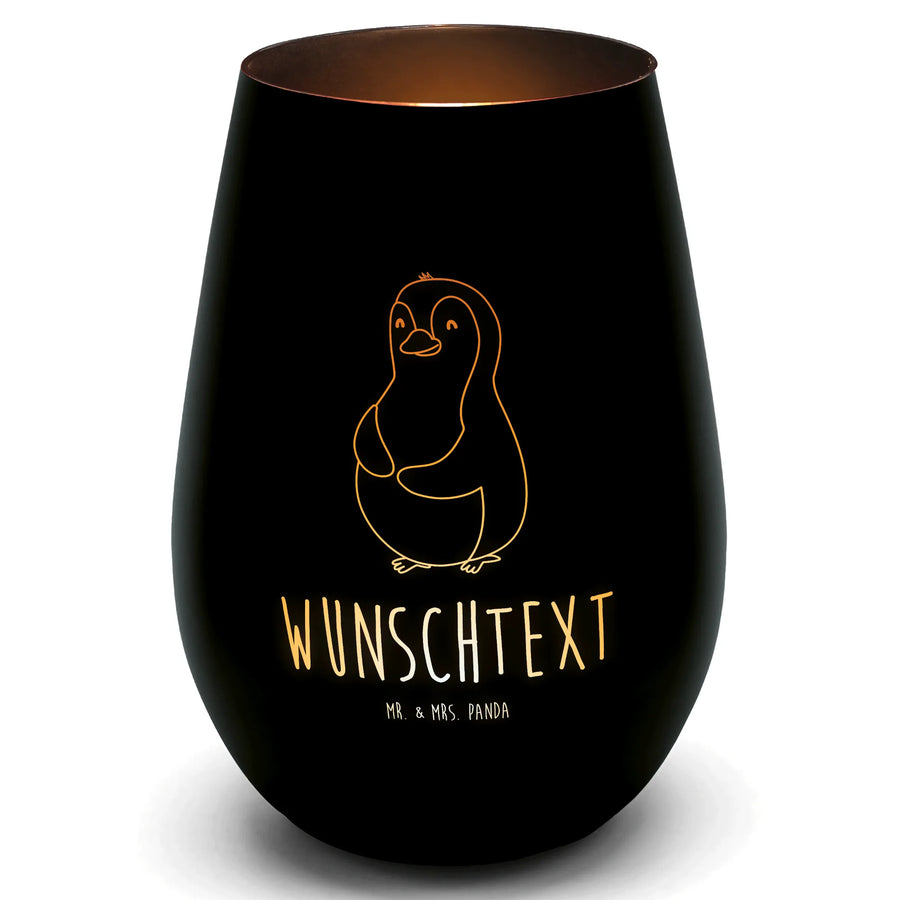 Gold Windlicht Personalisiert Pinguin Diät - Schwarz