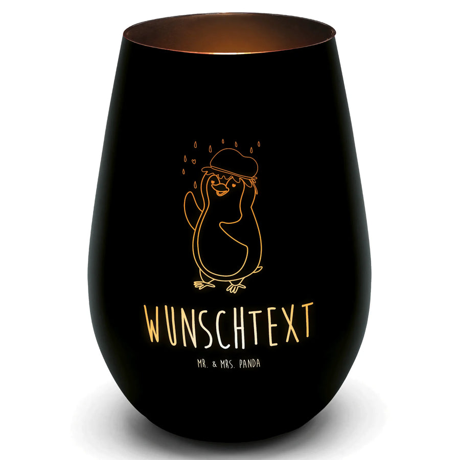 Gold Windlicht Personalisiert Pinguin Duschen - Schwarz