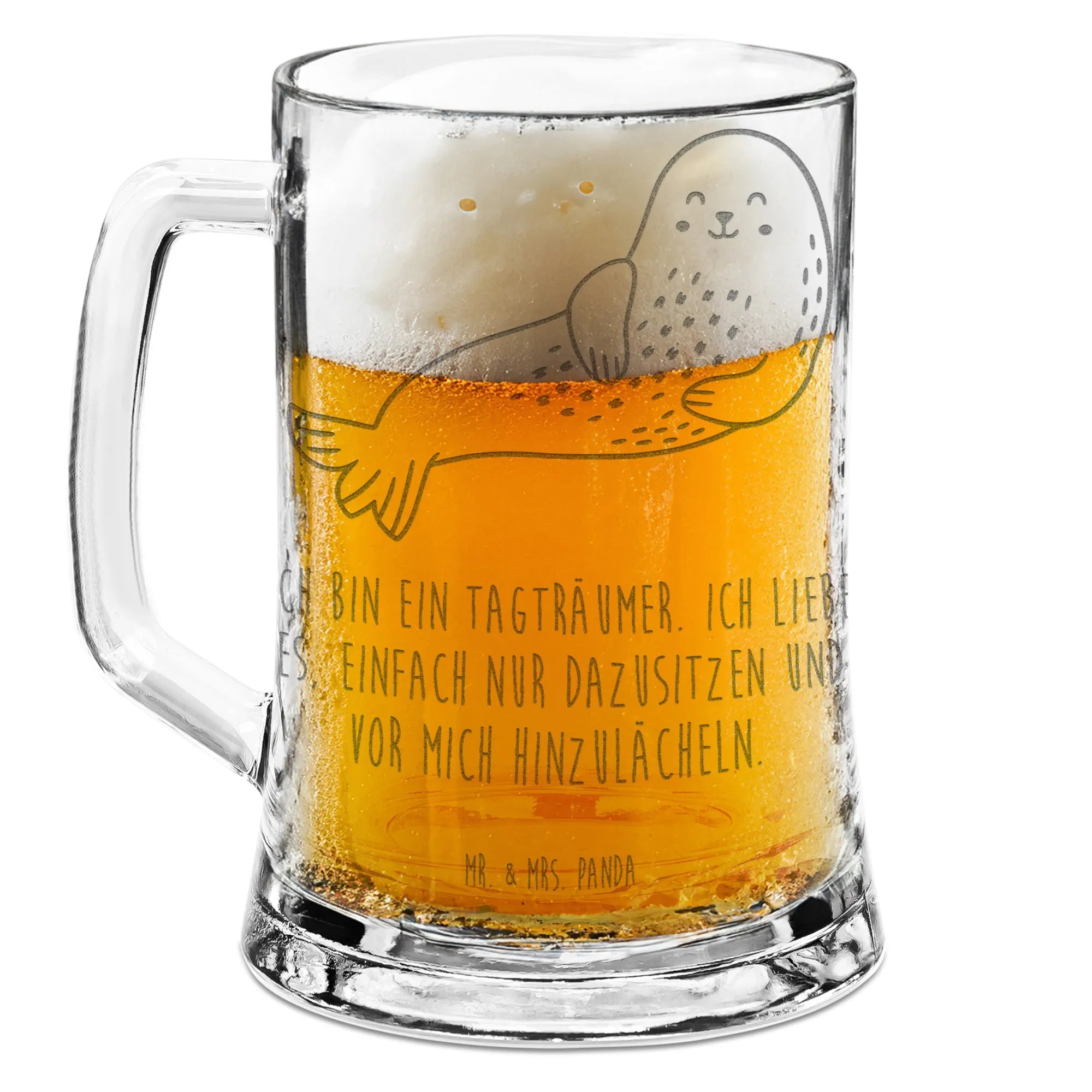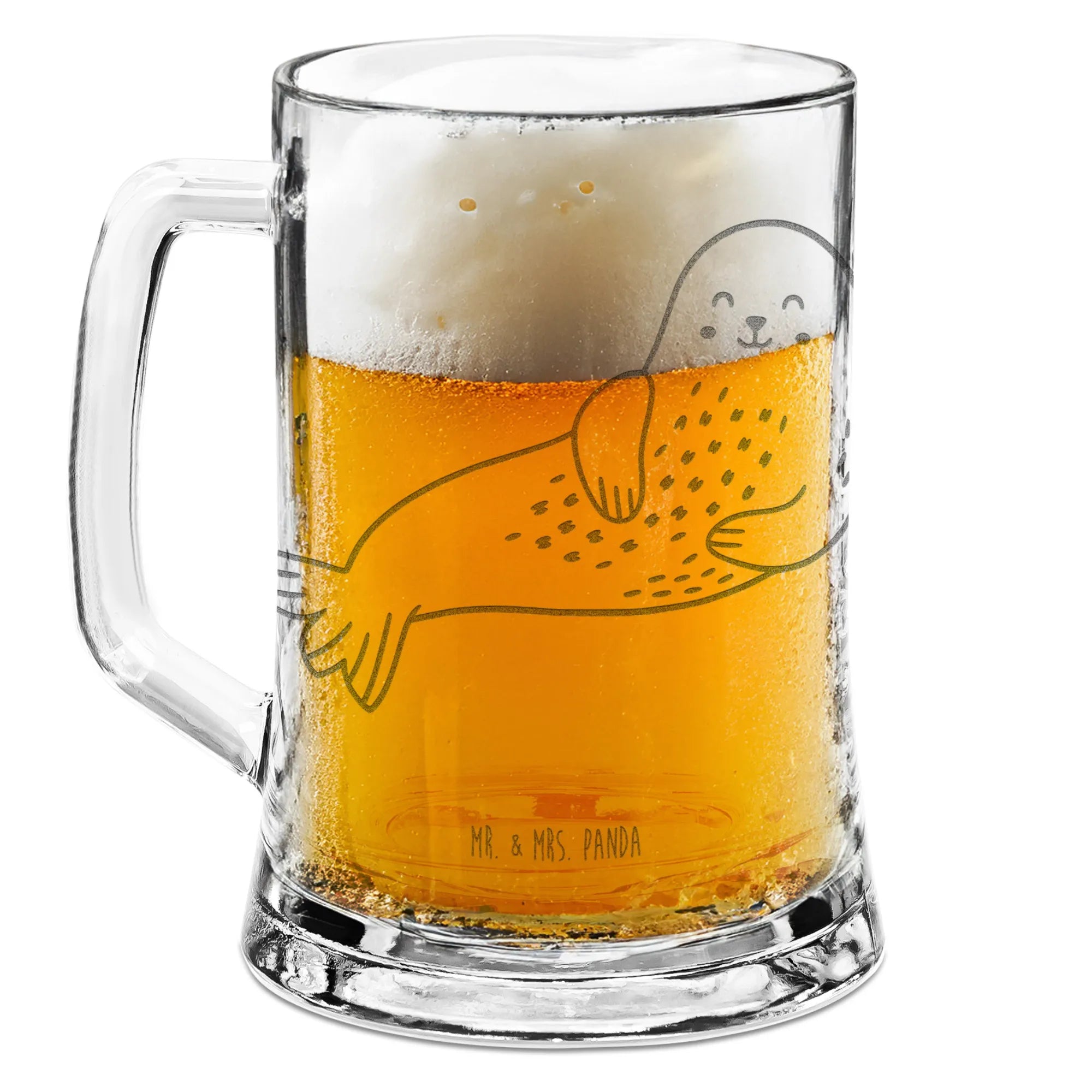 Gravur Bierkrug Robbe Lachen - mit Spruch