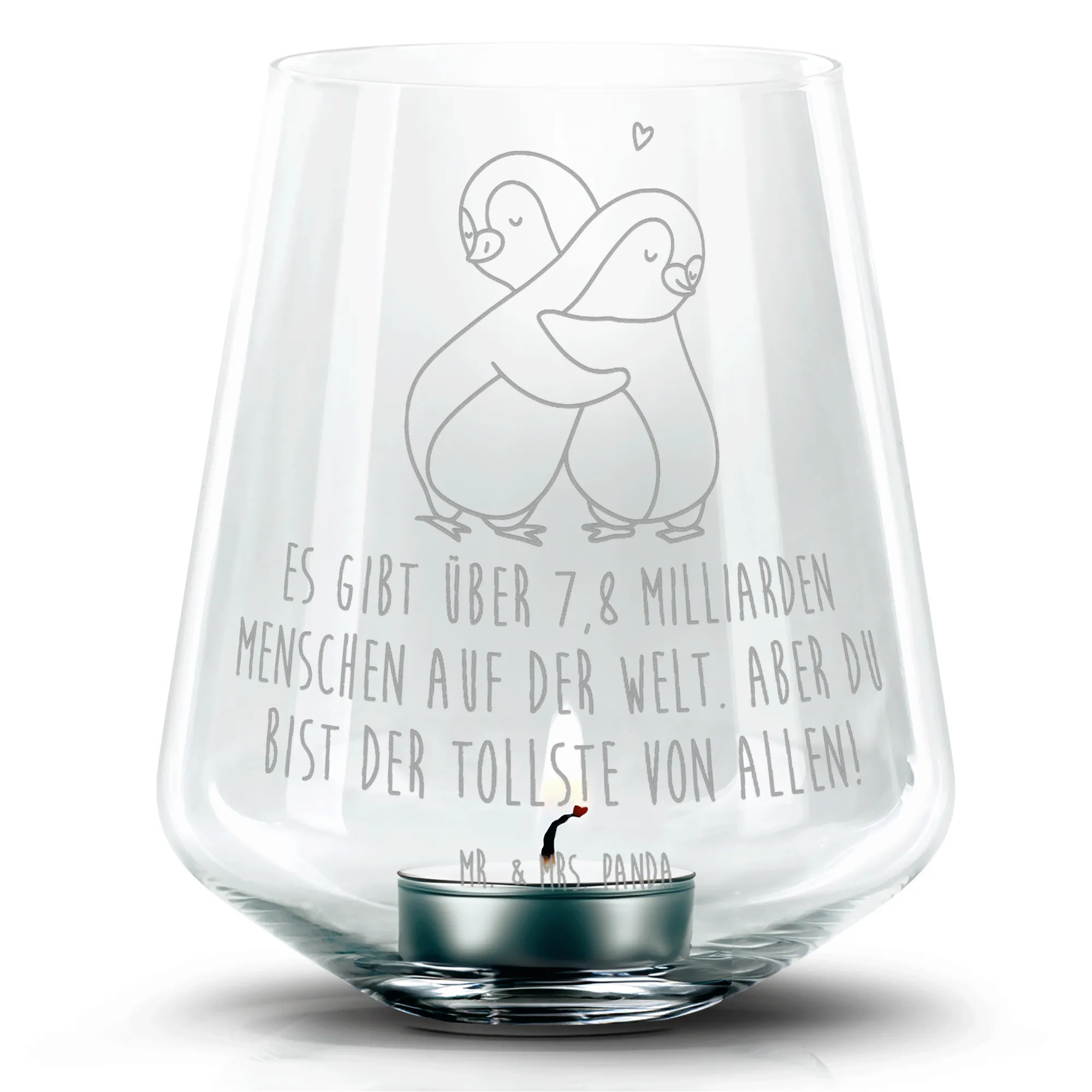 Graviertes Windlicht Pinguine Kuscheln - mit Spruch
