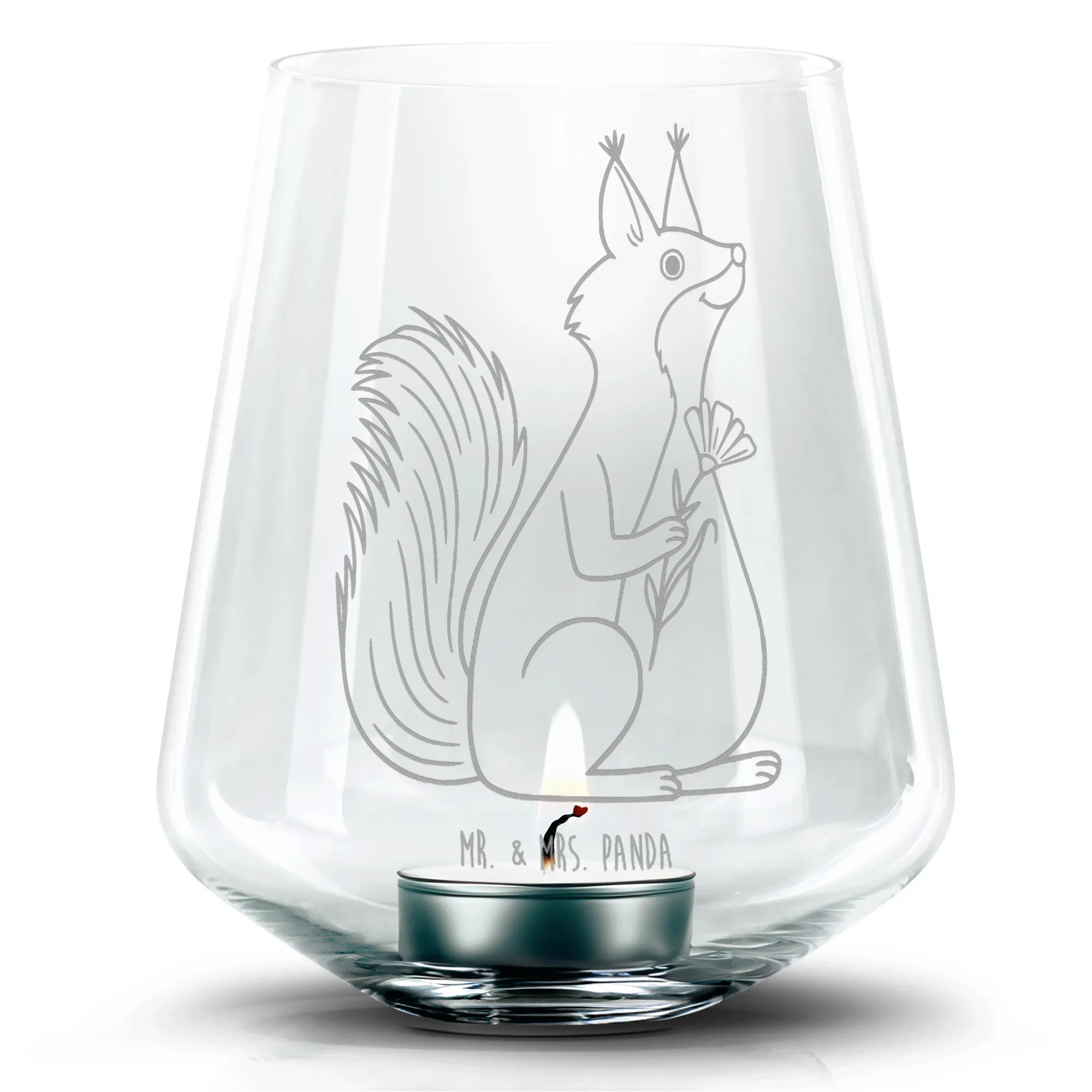 Gravur Windlicht Eichhörnchen Blume - mit Spruch