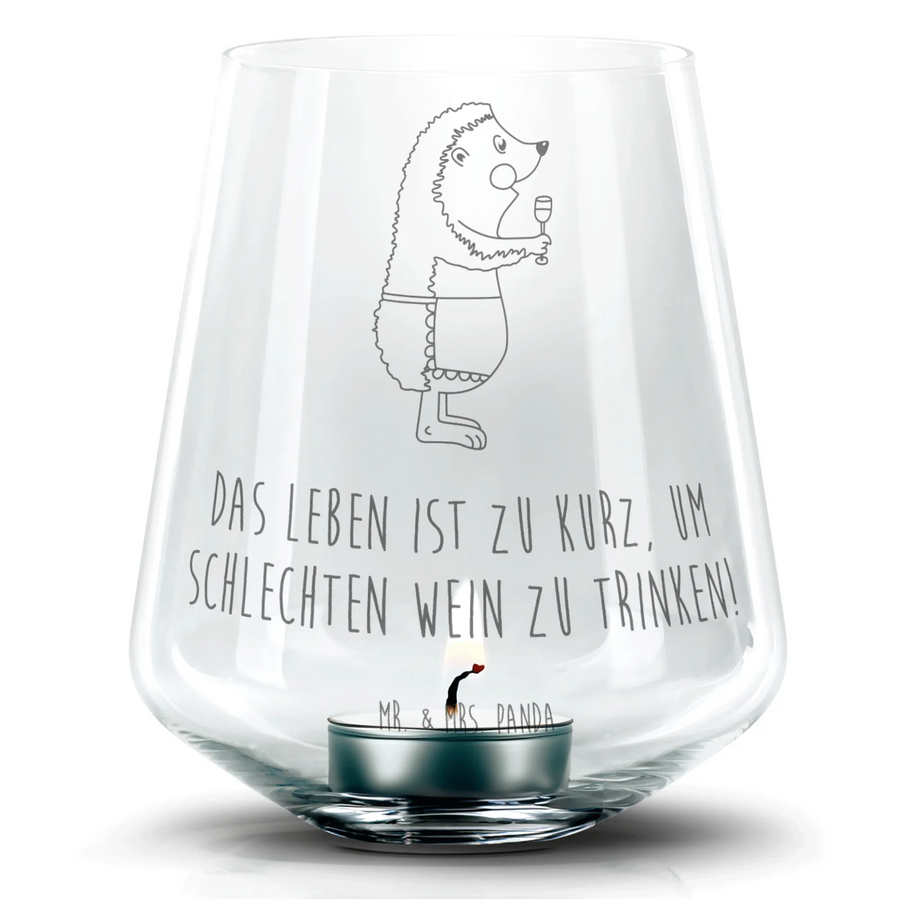 Windlicht Igel Wein - mit Spruch