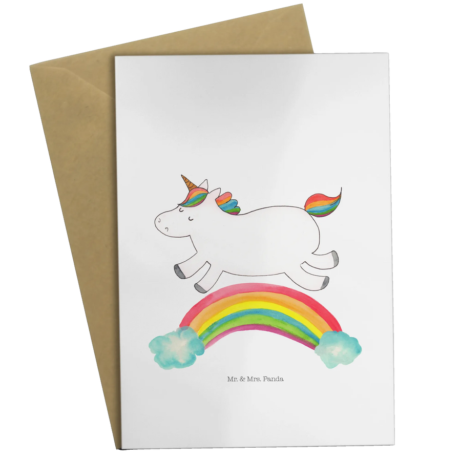 Du bist auf der Suche nach der perfekten Grußkarte für einen besonderen Anlass? Dann ist die wunderschöne Grußkarte mit dem Einhorn Regenbogen aus der Einhorn - Kollektion von Mr. & Mrs. Panda genau das Richtige für Dich!