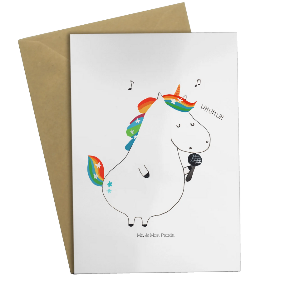 Entdecke die zauberhafte Grußkarte mit dem Motiv "Einhorn Sänger" aus der exklusiven Einhorn-Kollektion von Mr. & Mrs. Panda! Diese wundervolle Karte ist perfekt für alle, die Einhörner lieben und das Besondere schätzen. Egal ob zum Geburtstag, als Einladung zu einer Feier oder einfach nur so, um jemandem eine Freude zu machen – diese Grußkarte ist immer die richtige Wahl!