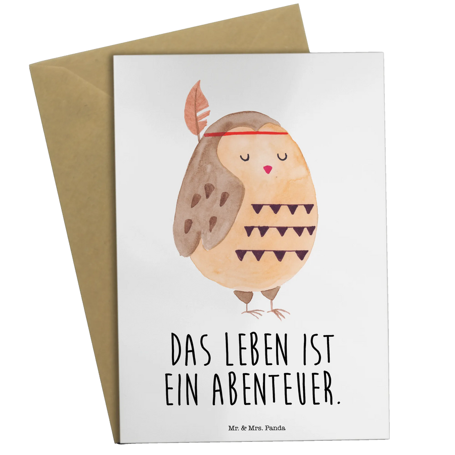 Die Grußkarte Eule Federschmuck von Mr. & Mrs. Panda ist das perfekte Geschenk für alle Eulenliebhaber! Mit dem fröhlichen Spruch „Das Leben ist ein Abenteuer“ bringt sie nicht nur Freude, sondern auch eine Botschaft voller Inspiration. Diese liebevoll gestaltete Karte verleiht jedem feierlichen Anlass das gewisse Etwas und wird garantiert ein Lächeln auf das Gesicht deiner Freunde und Familie zaubern. Ideal für Geburtstage, Hochzeiten oder einfach nur so, um jemandem einen besonderen Gruß zu schicken.