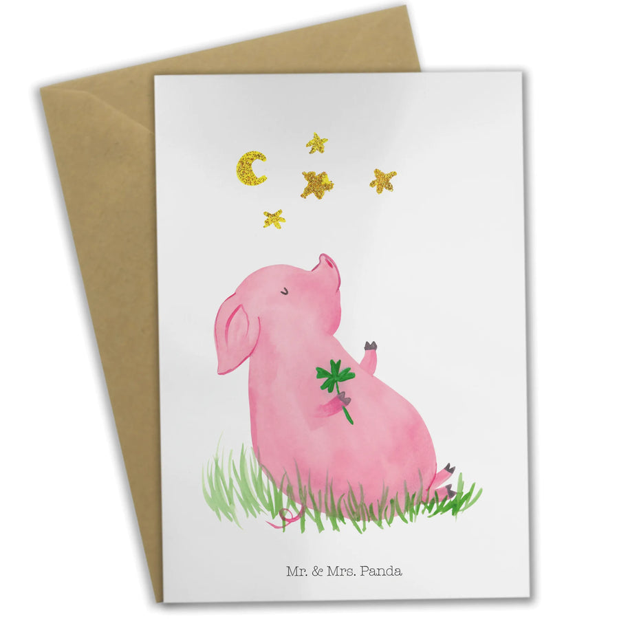 Du bist auf der Suche nach einer besonderen Möglichkeit, um Glück und Freude in das Leben eines geliebten Menschen zu bringen? Dann ist die Grußkarte mit dem süßen Motiv des Glücksschweins von Mr. & Mrs. Panda genau die richtige Wahl! Diese wunderschöne Klappkarte ist mehr als nur ein Stück Papier; sie ist ein Glücksbringer. Das niedliche Design zeigt ein kleines Schweinchen, das ein Kleeblatt hält – ein klassisches Symbol für Glück, das jeder in seinem Leben gebrauchen kann.