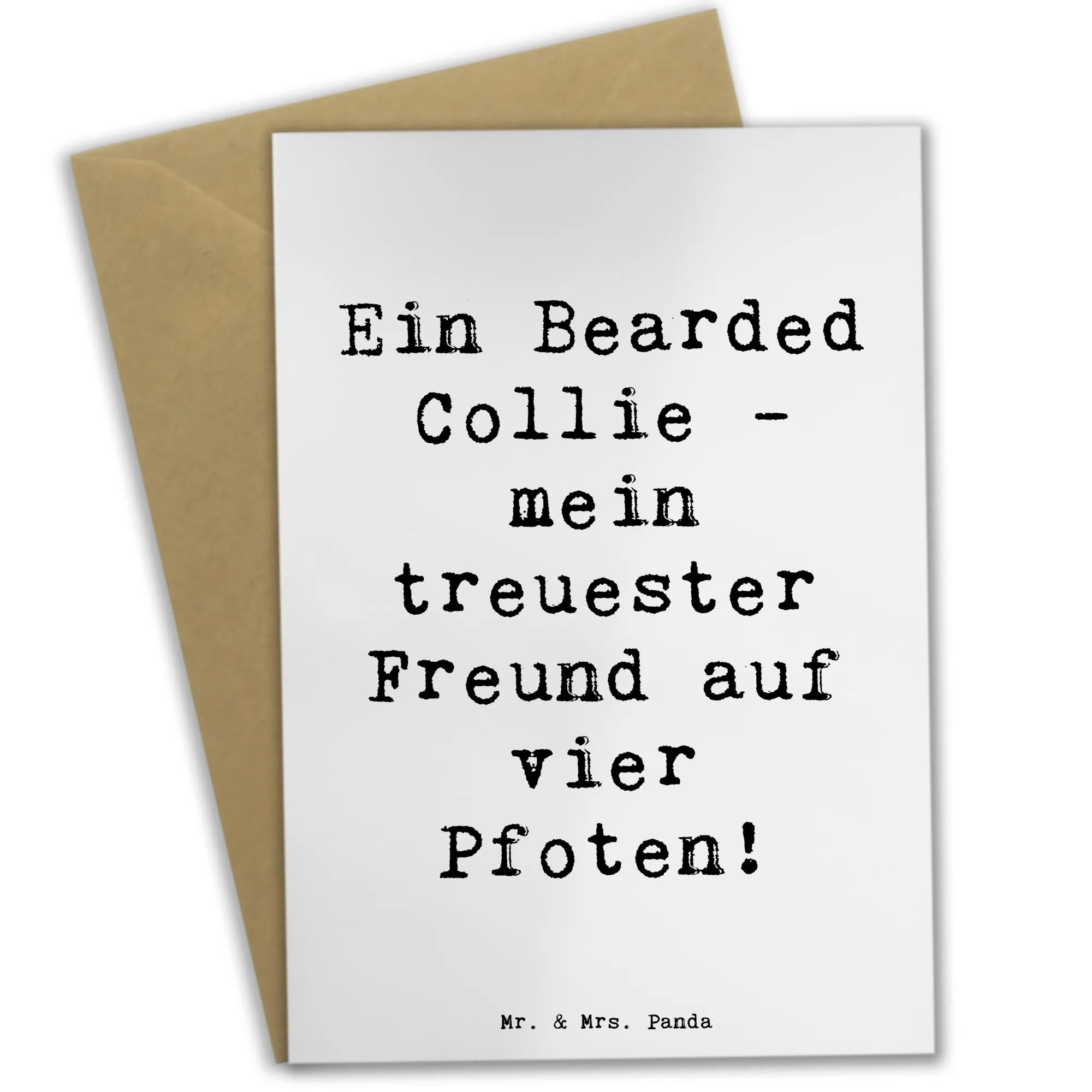Herzliche Grüße mit Hundeliebe: Diese liebevoll illustrierte Grußkarte zeigt einen bezaubernden Bearded Collie aus der Hunderassen-Kollektion von Mr. & Mrs. Panda. Auf der Vorderseite steht der warmherzige Spruch „Ein Bearded Collie - mein treuester Freund auf vier Pfoten!“, der sofort Sympathie weckt und Freude schenkt.