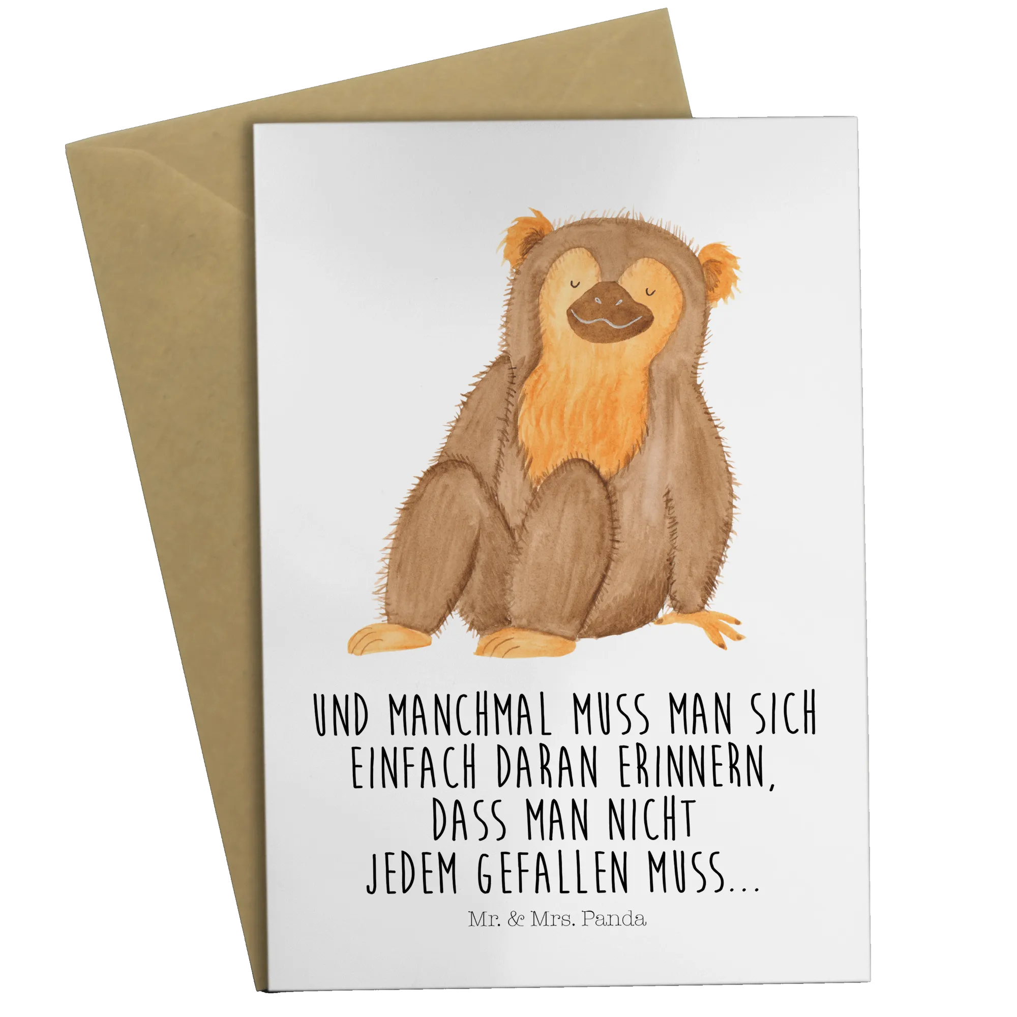 Die wunderschöne Grußkarte von Mr. & Mrs. Panda mit dem süßen Motiv des kleinen Affen Konrad ist ein ganz besonderes Geschenk für all jene, die Wert auf Selbstliebe, Respekt und Motivation legen. Ob zum Geburtstag, zur Hochzeit oder einfach zur Aufmunterung – diese Klappkarte ist perfekt für jeden Anlass.