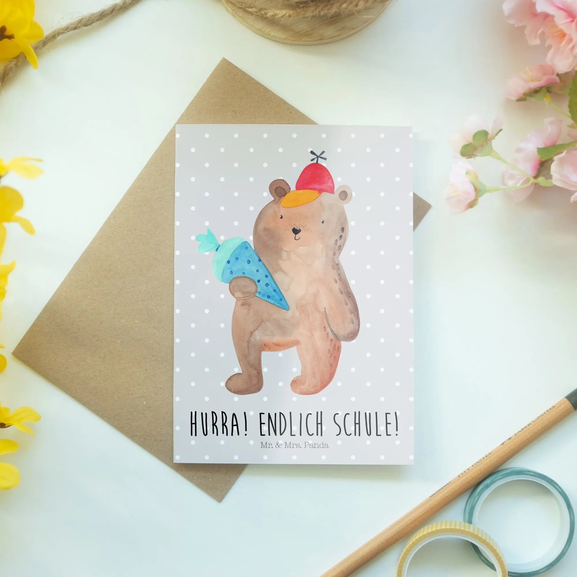 Die wunderschöne Grußkarte mit dem Bär-Motiv und der Schultüte von Mr. & Mrs. Panda ist das perfekte Geschenk für den ersten Schultag!