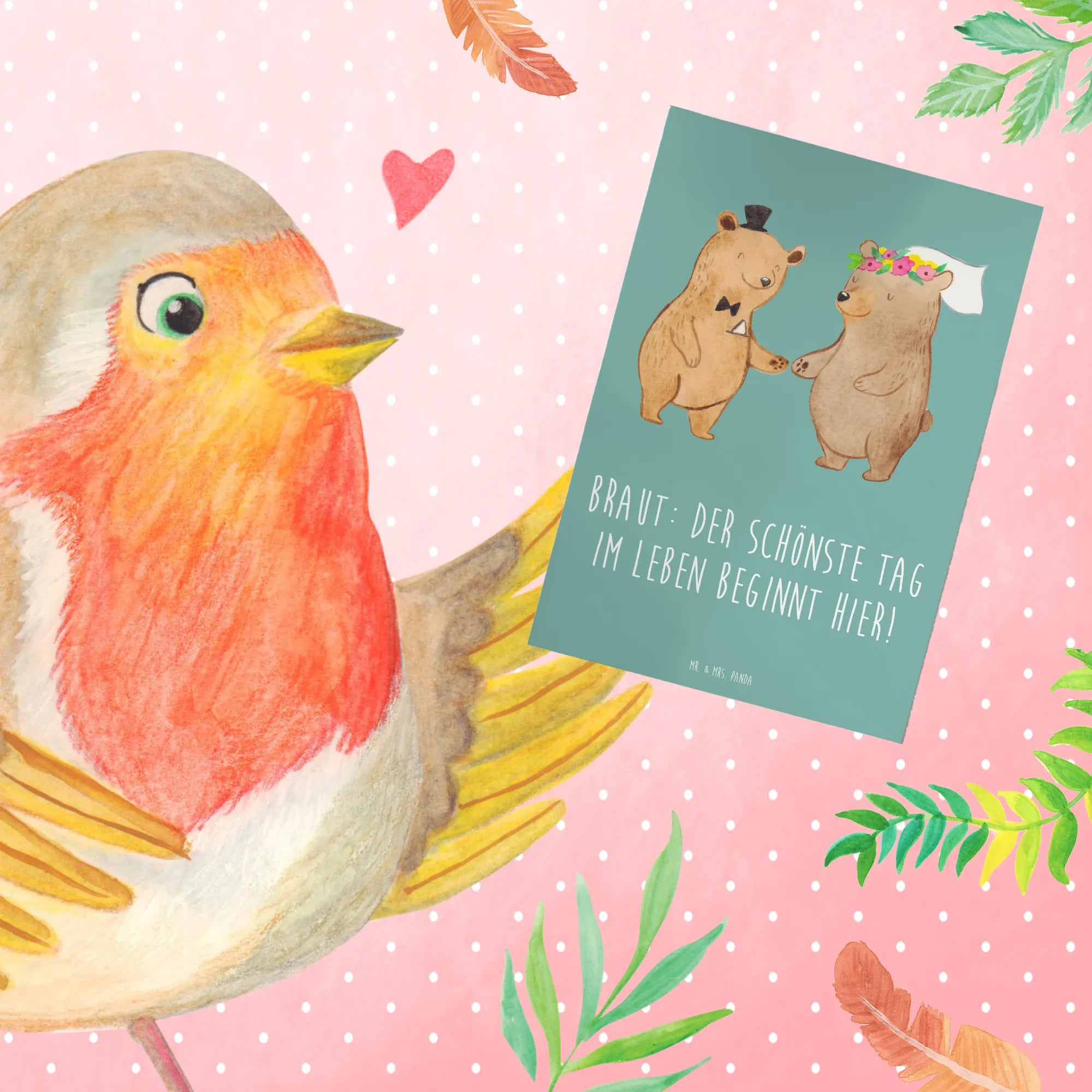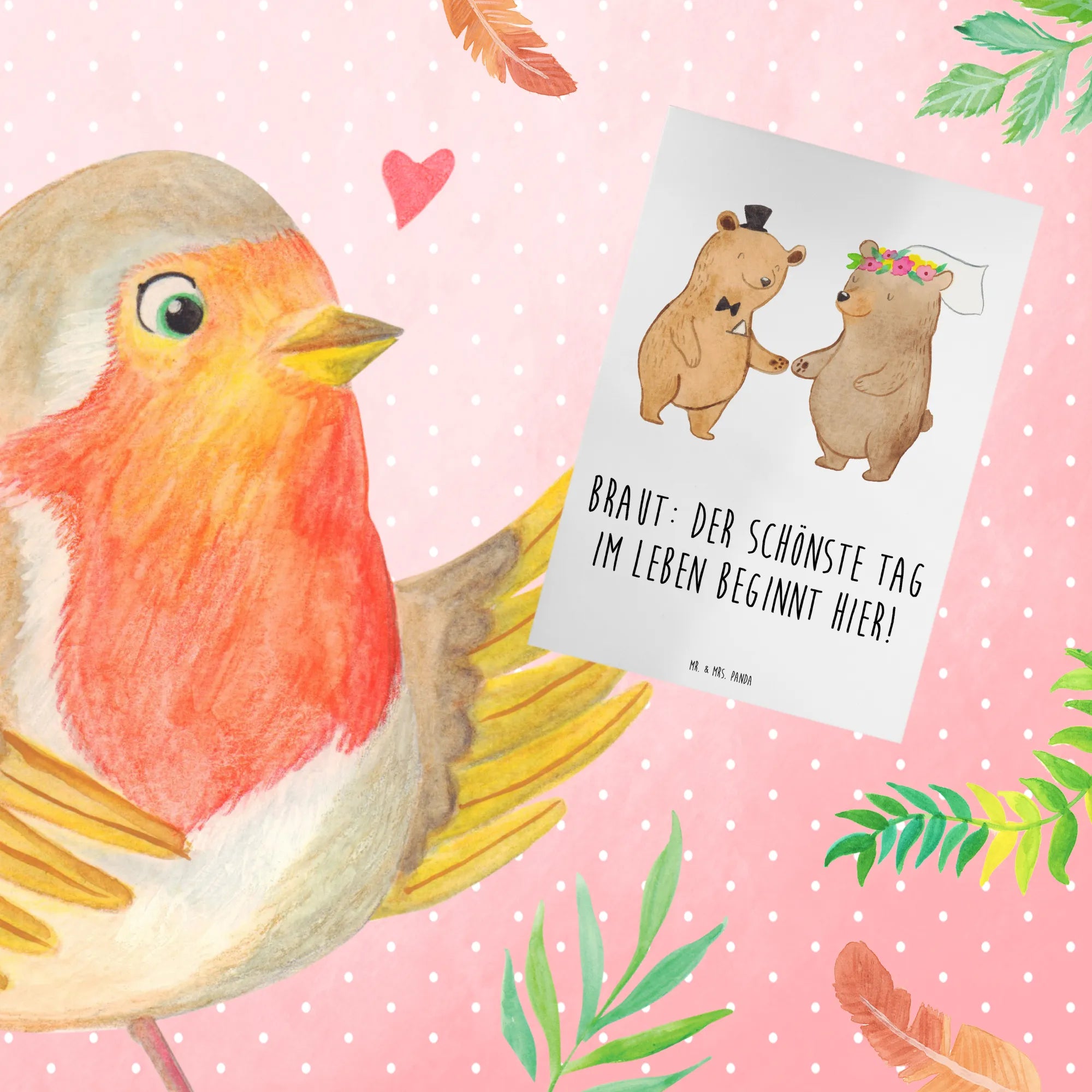 Die Grußkarte für die Braut von Mr. & Mrs. Panda ist das perfekte Geschenk für jeden, der in der Vorfreude auf den schönsten Tag im Leben eines Paares verankert ist. Egal, ob Du die Karte für Dich selbst oder als Geschenk für die Braut wählst, diese wunderschöne und einzigartige Grußkarte wird garantiert begeistern! Mit dem bezaubernden Spruch "Braut: Der schönste Tag im Leben beginnt hier!" bringt sie den ganz besonderen Glanz in die Hochzeitsvorbereitungen.