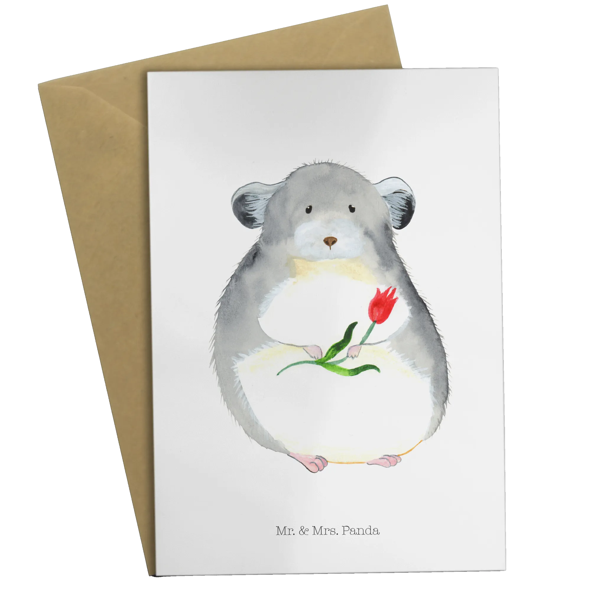 Wenn Du auf der Suche nach einem ganz besonderen Geschenk für Freunde oder Familie bist, dann ist die Grußkarte "Chinchilla mit Blume" aus der "Small World" Kollektion von Mr. & Mrs. Panda genau das Richtige! Diese wunderschöne und einzigartige Grußkarte ist perfekt für zahlreiche Anlässe, sei es ein Geburtstag, eine Hochzeit oder einfach nur, um jemandem eine Freude zu machen.