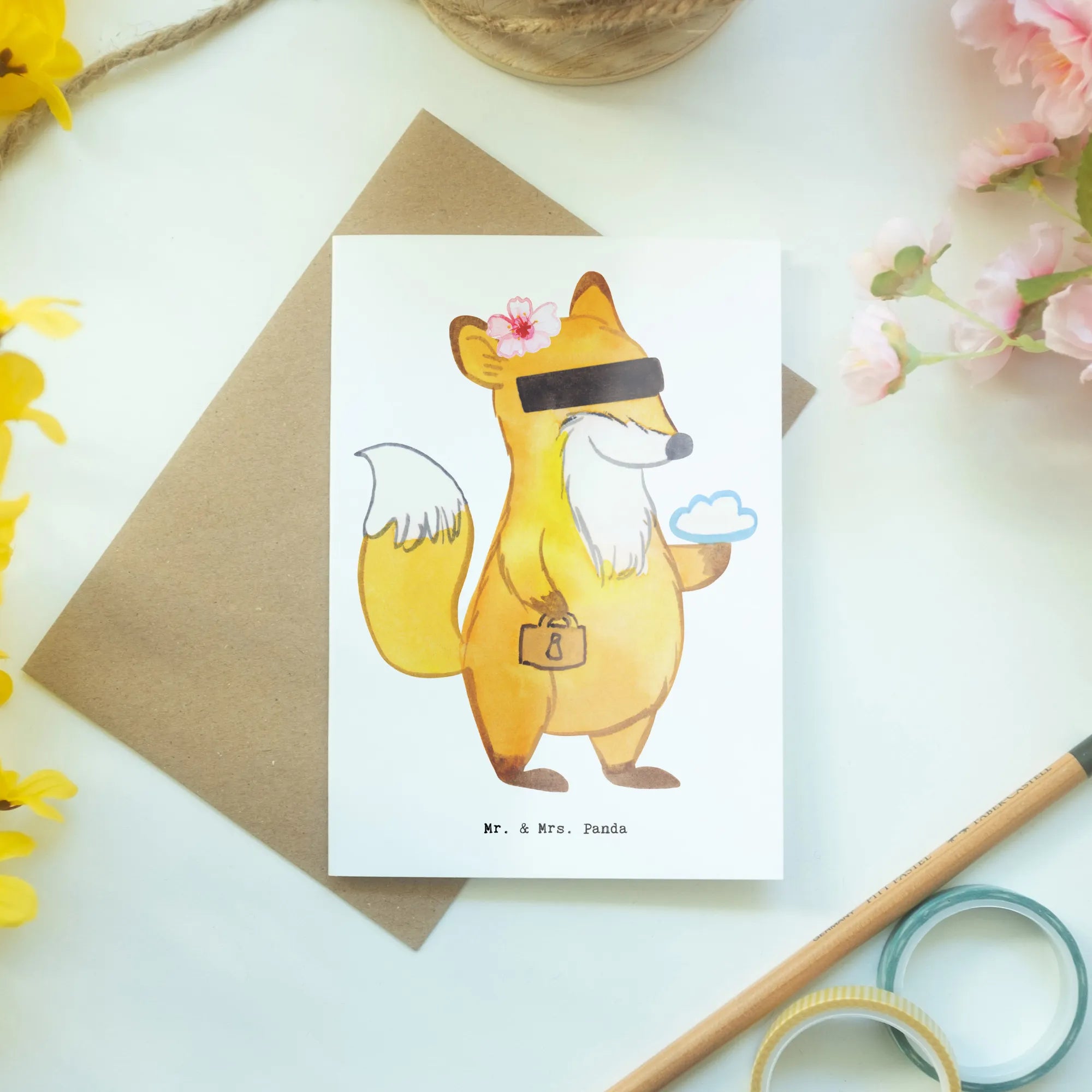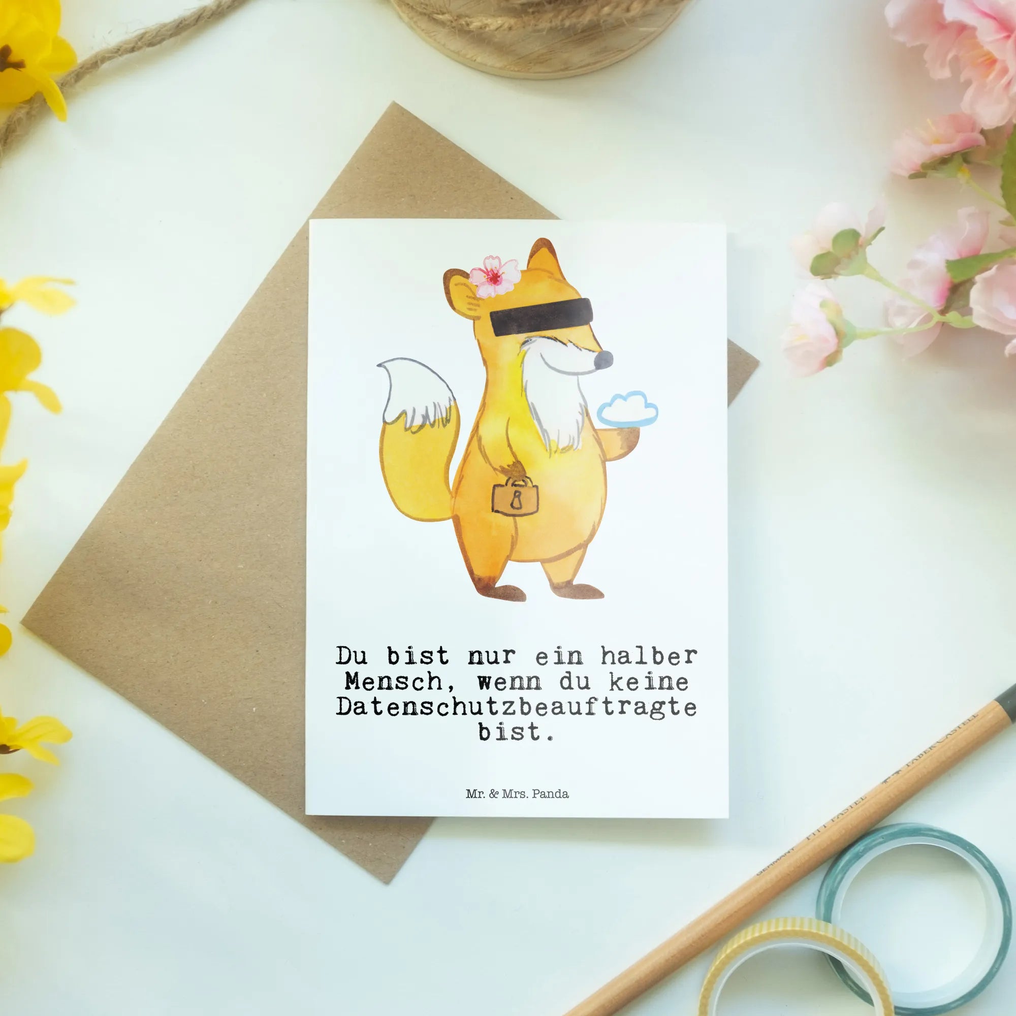 Die Grußkarte "Datenschutzbeauftragte mit Herz" aus der Kollektion Berufe von Mr. & Mrs. Panda ist das ideale Geschenk für alle, die die wichtige Aufgabe eines Datenschutzbeauftragten mit Leidenschaft und Herz ausüben.