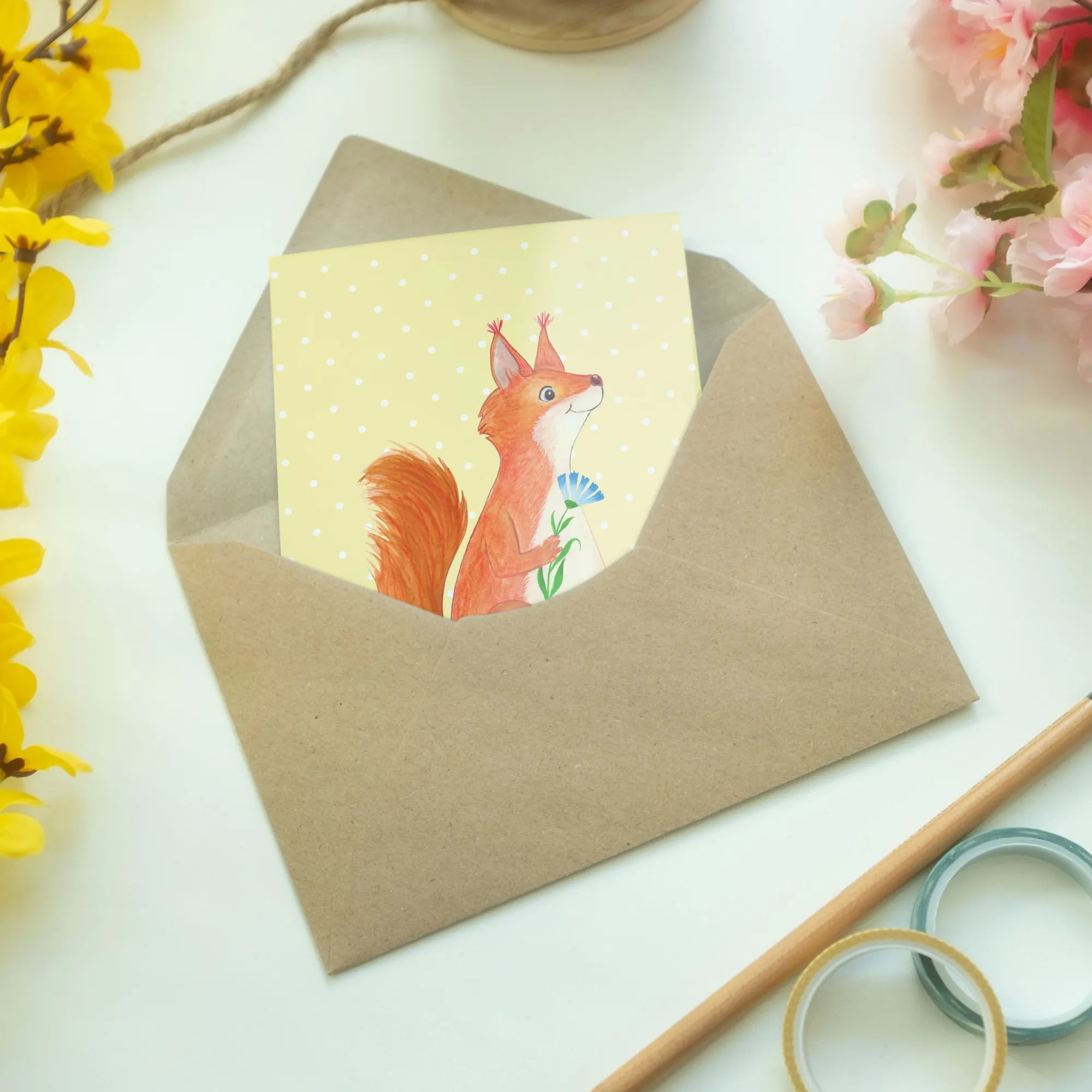 Grußkarte Eichhörnchen Blume - mit Spruch - Gelb Pastell