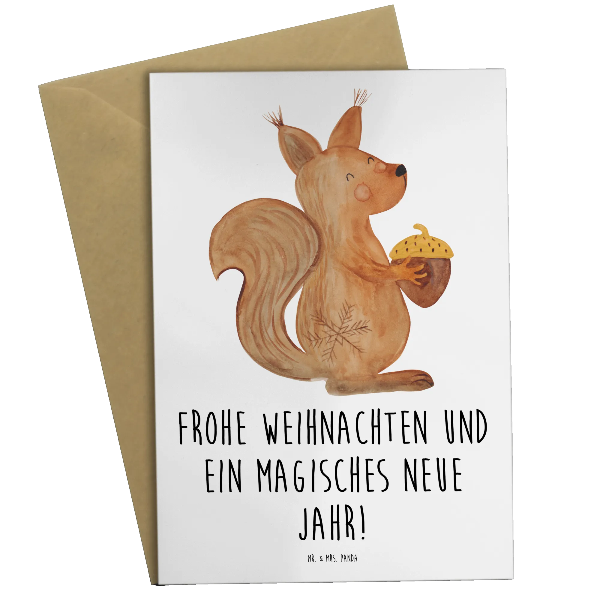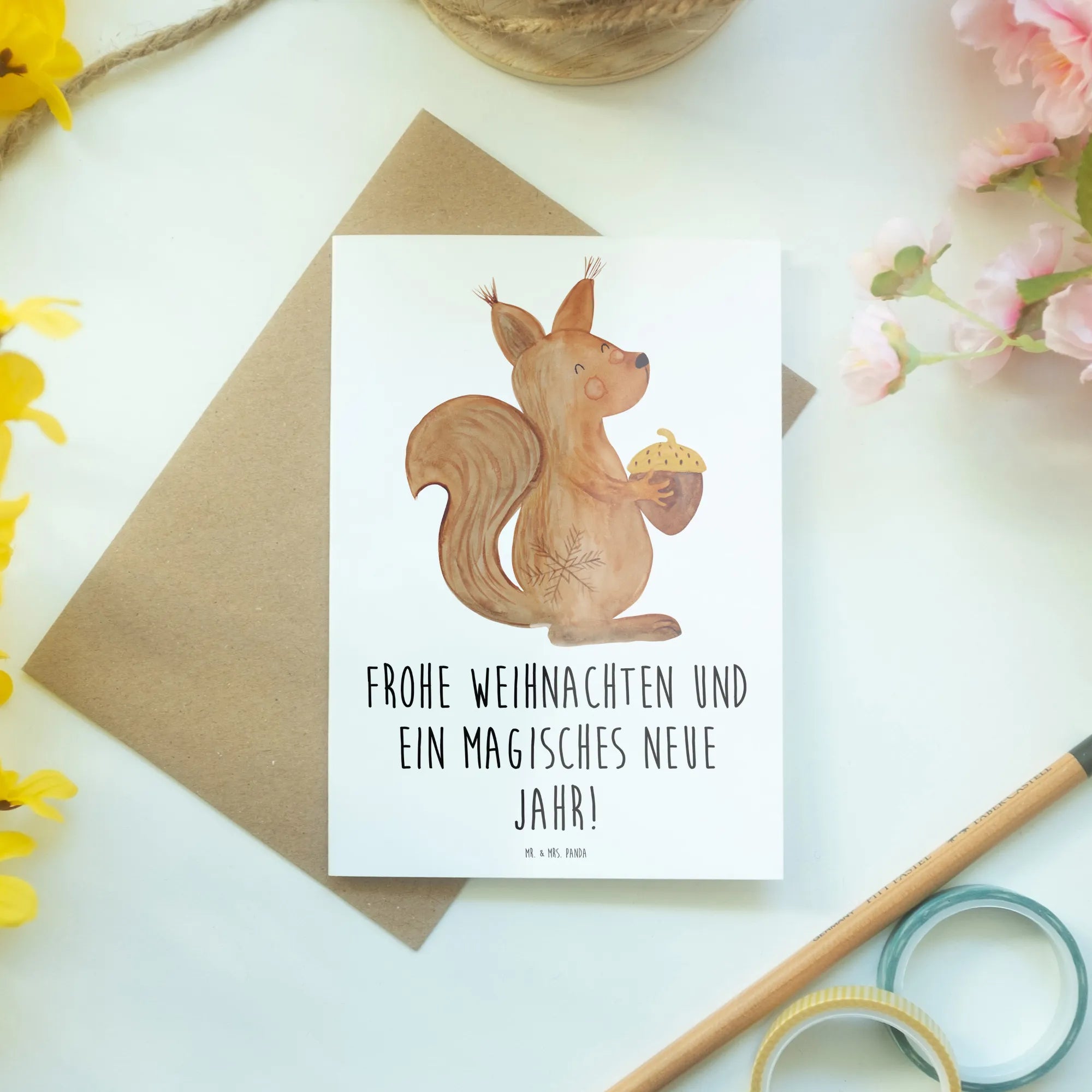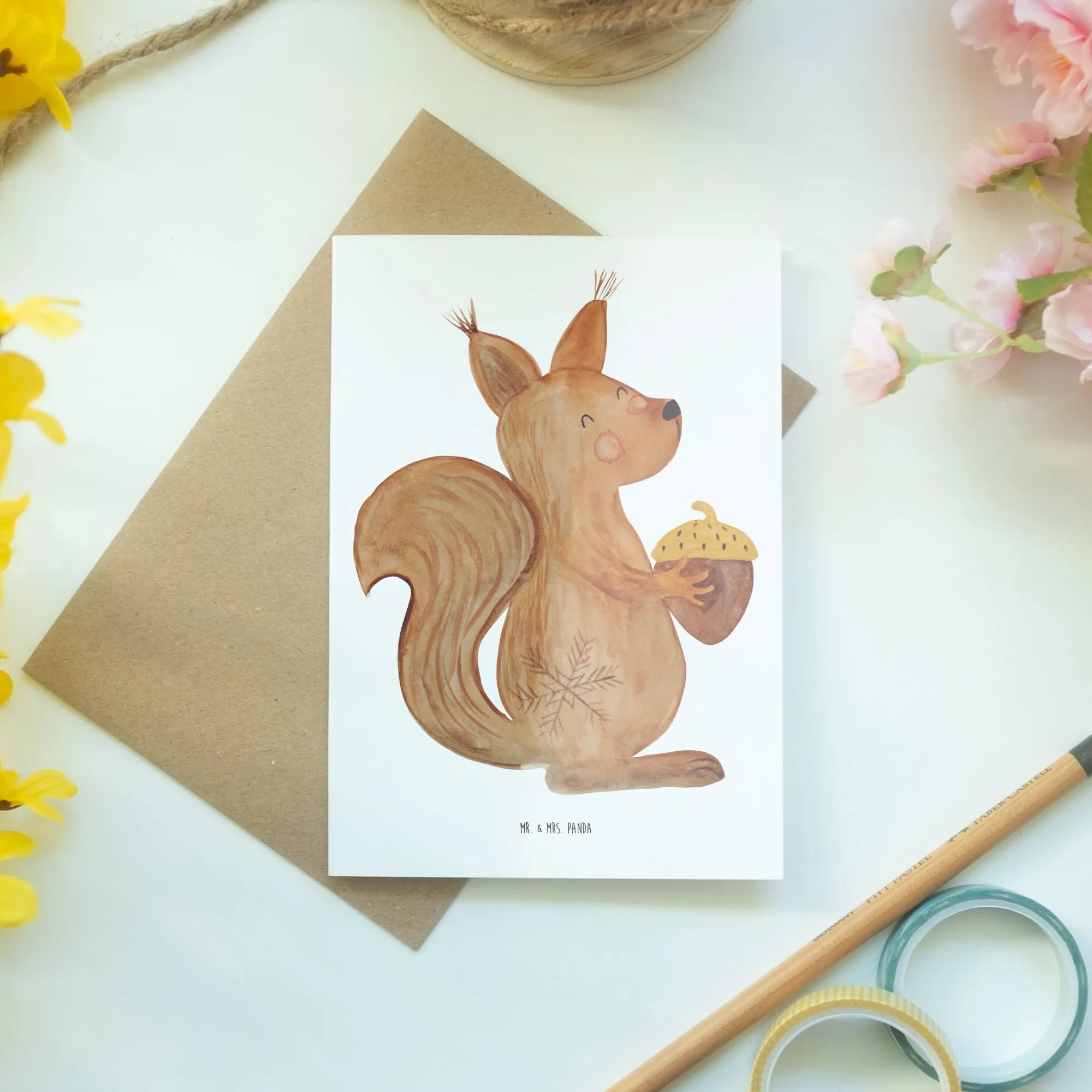 Die Grußkarte Eichhörnchen Weihnachten aus unserer Winter Kollektion von Mr. & Mrs. Panda ist das perfekte Geschenk für alle, die die winterliche Zauberzeit lieben! Mit einem charmanten Eichhörnchen, das freudig eine Eichel hält, bringt diese Karte nicht nur Freude, sondern auch die frohen Botschaften des Weihnachtsfestes.