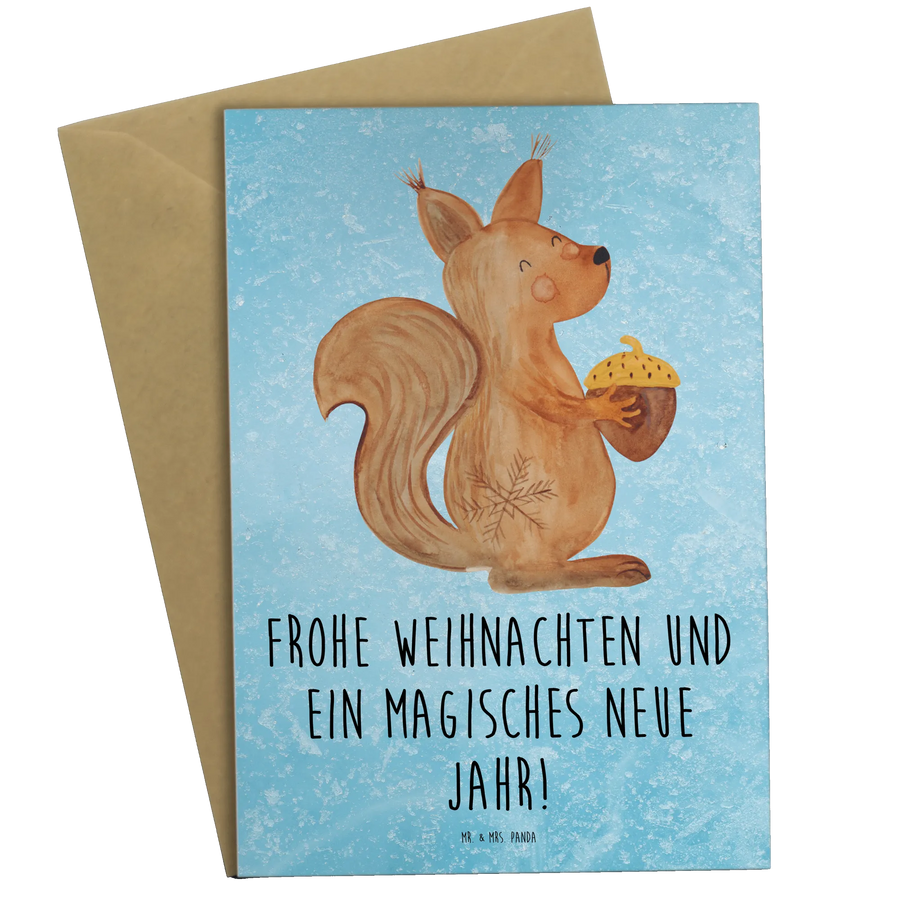 Die liebevolle Grußkarte "Eichhörnchen Weihnachten" aus der Winter Kollektion von Mr. & Mrs. Panda ist das perfekte Geschenk für die besinnliche Zeit des Jahres. Diese zauberhafte Karte, gefertigt aus hochwertigem 300 Gramm Karton, besticht durch ihre edel glänzende Vorderseite und matte Innenseite, die sich wunderbar zum persönlichen Beschriften eignet.
