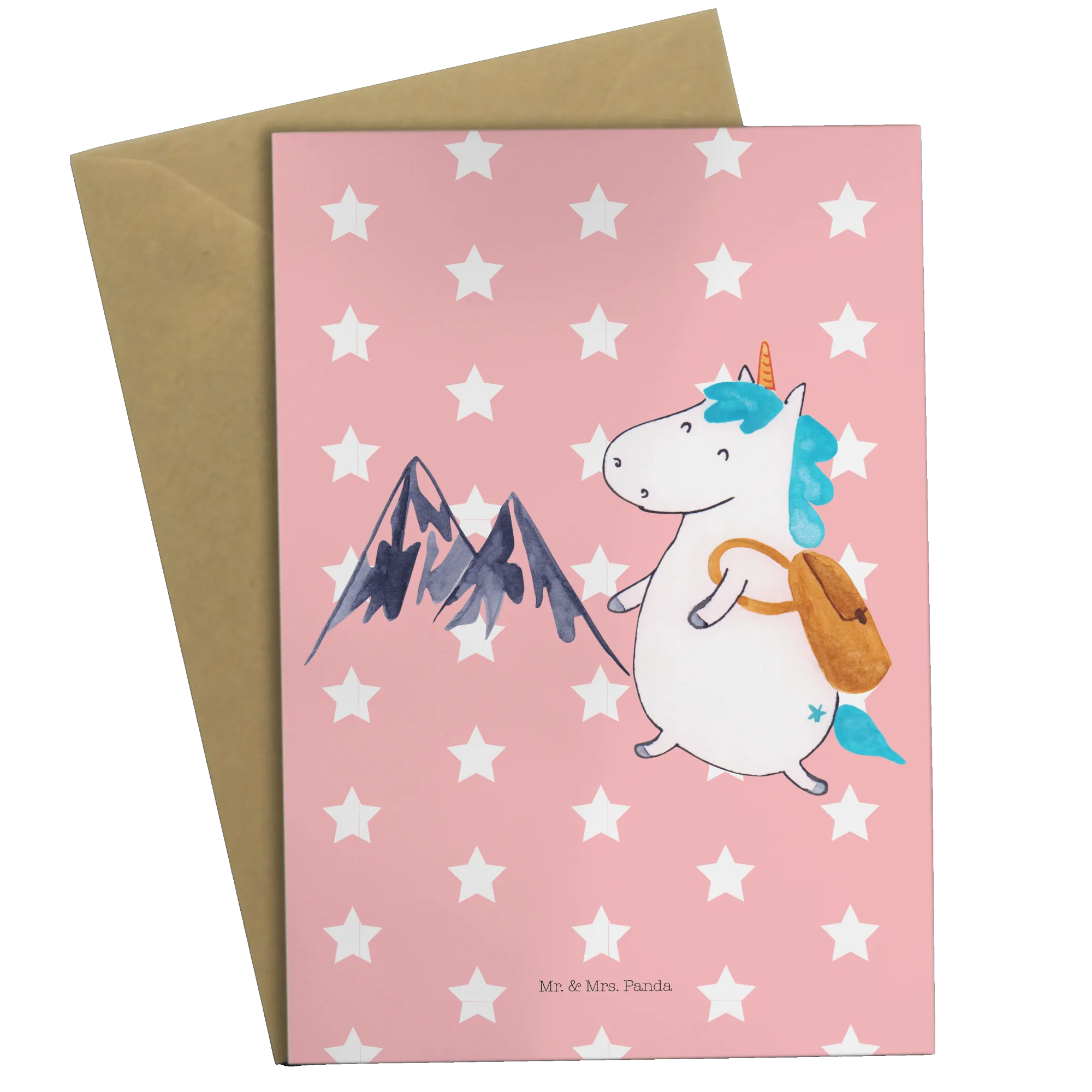 Grußkarte Einhorn Bergsteiger - mit Spruch - Rot Pastell