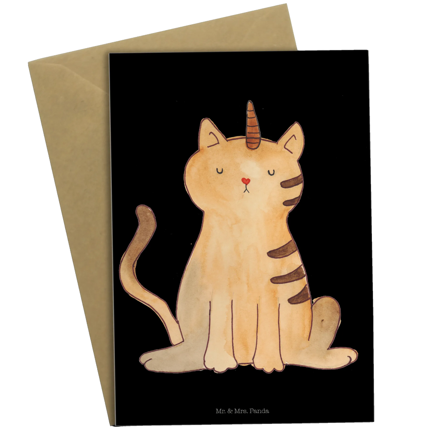 Grußkarte Einhorn Katze - ohne Spruch - Schwarz
