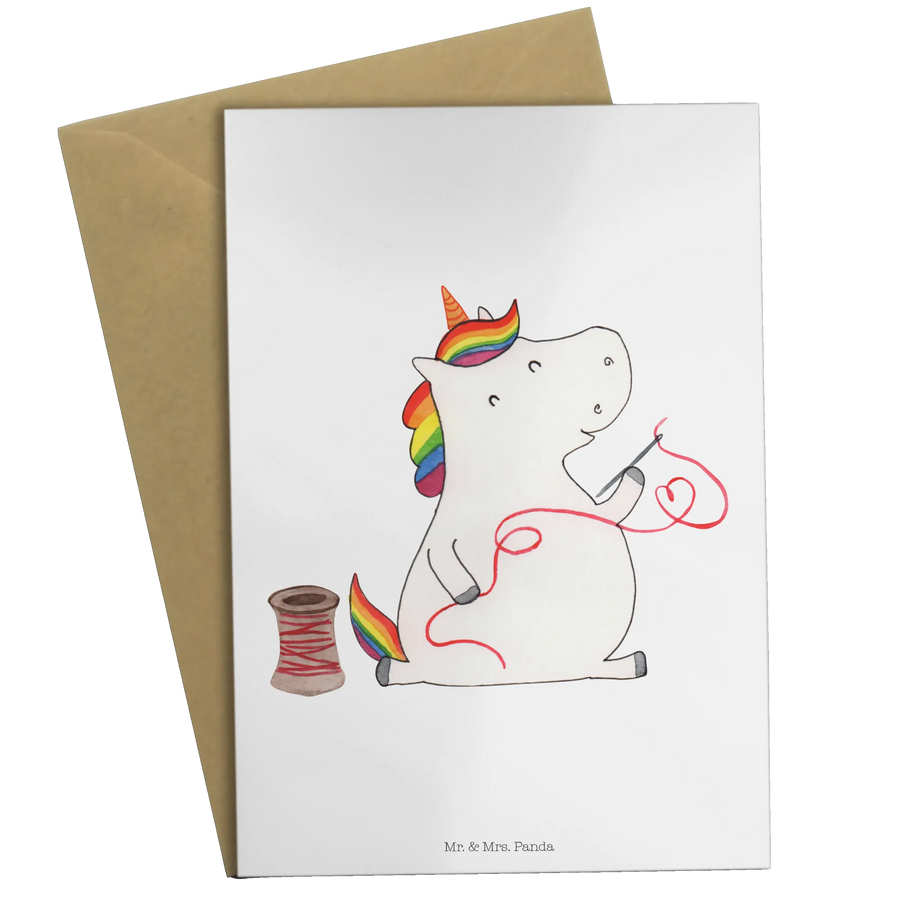 Die Grußkarte "Einhorn Näherin" aus der zauberhaften Einhorn-Kollektion von Mr. & Mrs. Panda ist das perfekte Geschenk für kreative Seelen und Einhornliebhaber! 🎉