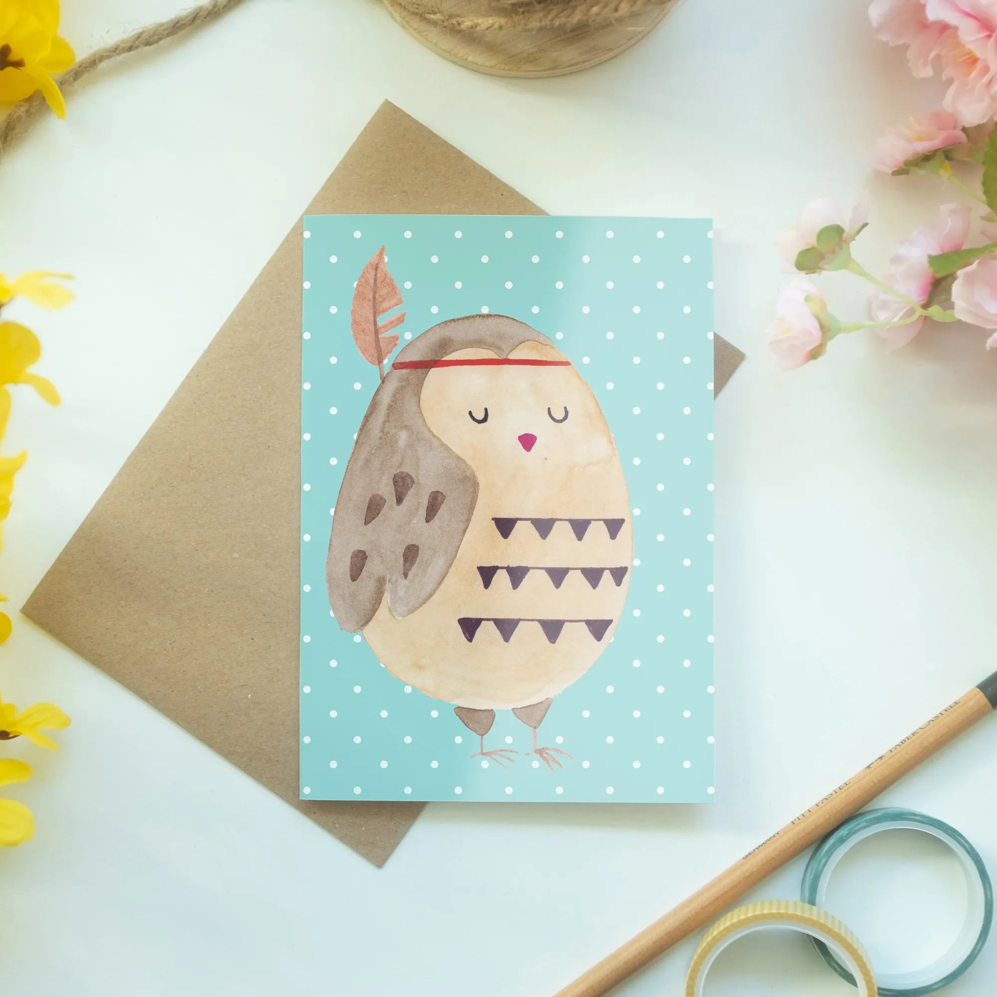 Wenn Du Eulenliebe in Deinem Zuhause verbreiten möchtest, ist diese Karte einfach unverzichtbar! Setze ein Zeichen für Individualität und Kreativität mit dieser wundervollen Grußkarte, die viel mehr als nur Papier ist – sie ist ein Ausdruck von Gefühlen, Erinnerungen und besonderen Momenten. Verleihe Deinen herzlichen Grüßen einen besonderen Rahmen mit der Eule Federschmuck von Mr. & Mrs. Panda und bereite Deinen Liebsten eine Freude, die sie nie vergessen werden.