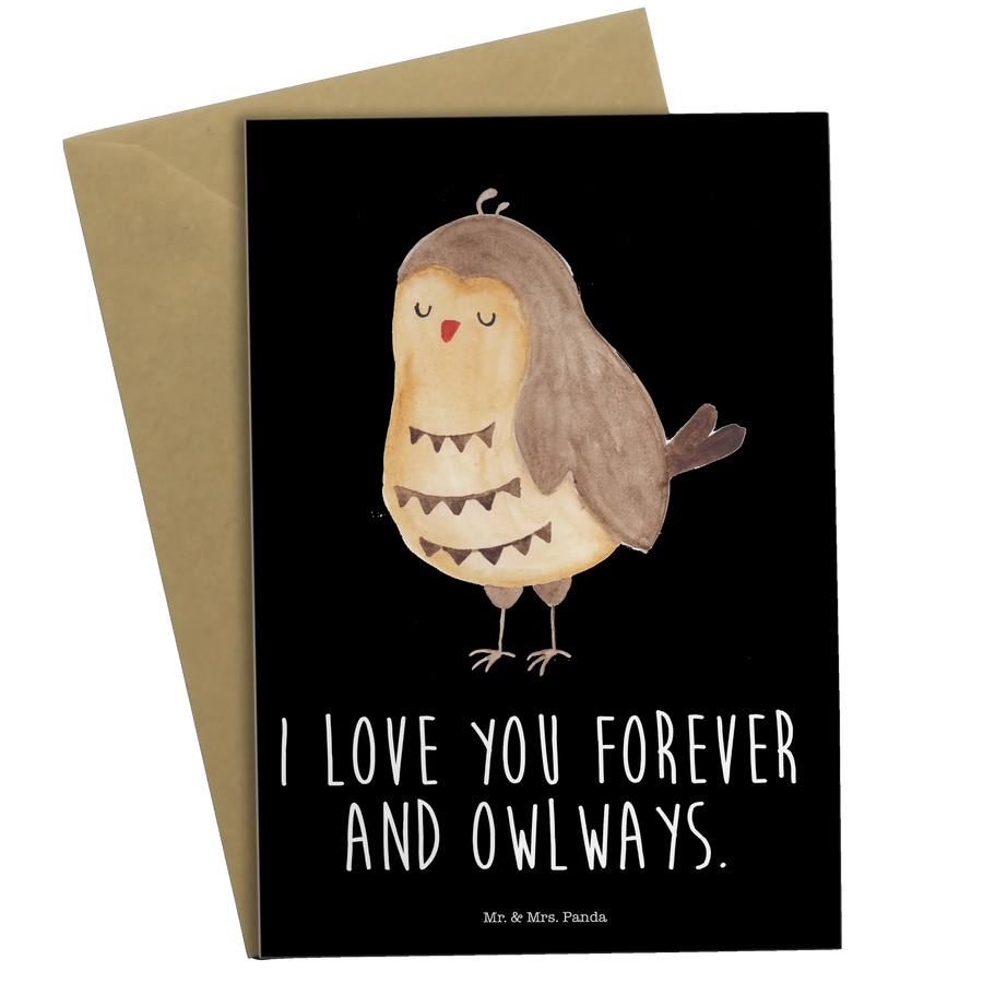 Die liebevolle Grußkarte Eule Zufrieden von Mr. & Mrs. Panda ist das perfekte Geschenk für all jene, die einer besonderen Person eine Freude machen möchten! Egal ob zum Geburtstag, Hochzeitstag oder einfach nur so - diese Karte enthält den zauberhaften Spruch "I love you forever and owlways" und wird garantiert für Herzklopfen sorgen. Mit einer niedlichen Eule, die zufrieden dasteht, bringt sie Freude in jedes Zuhause.