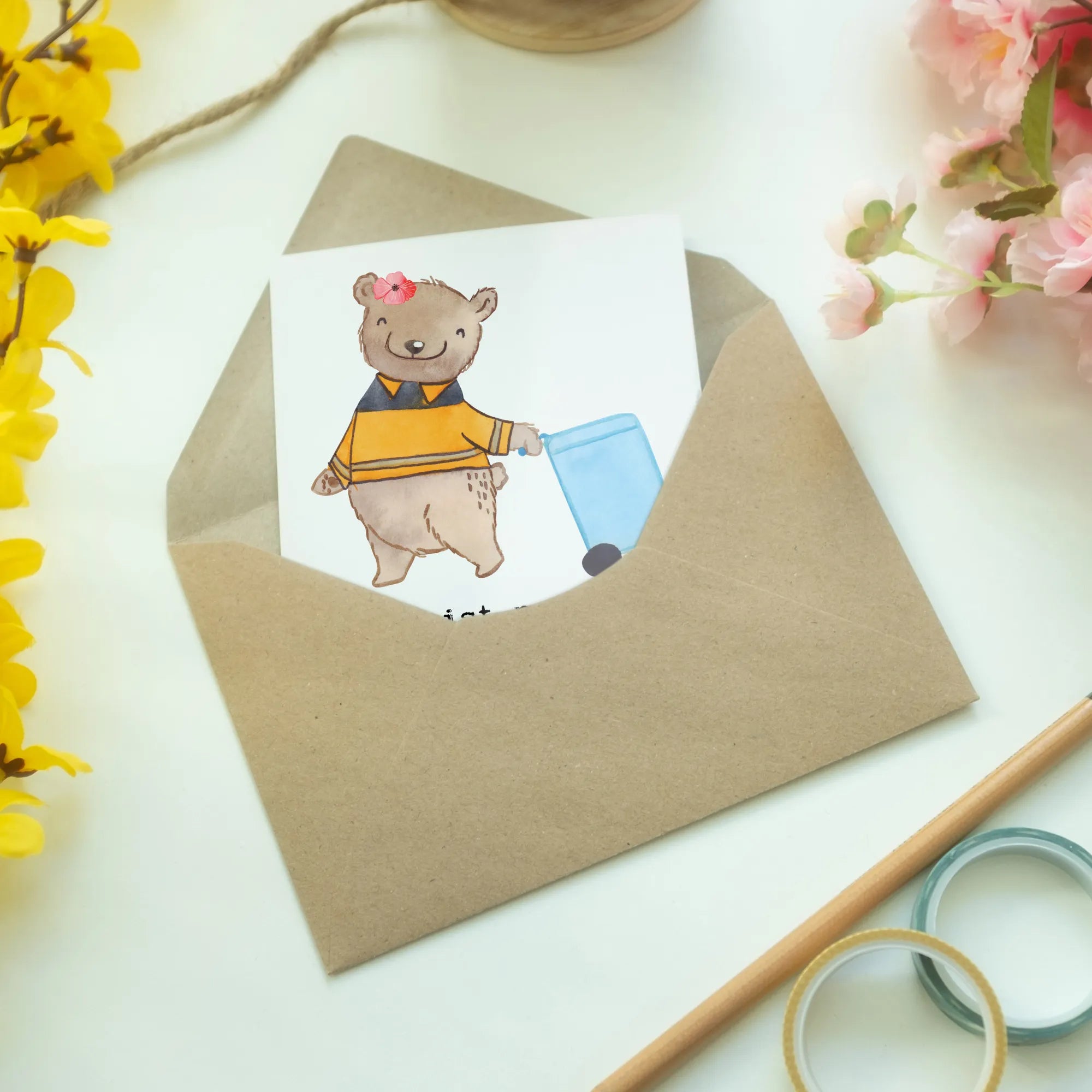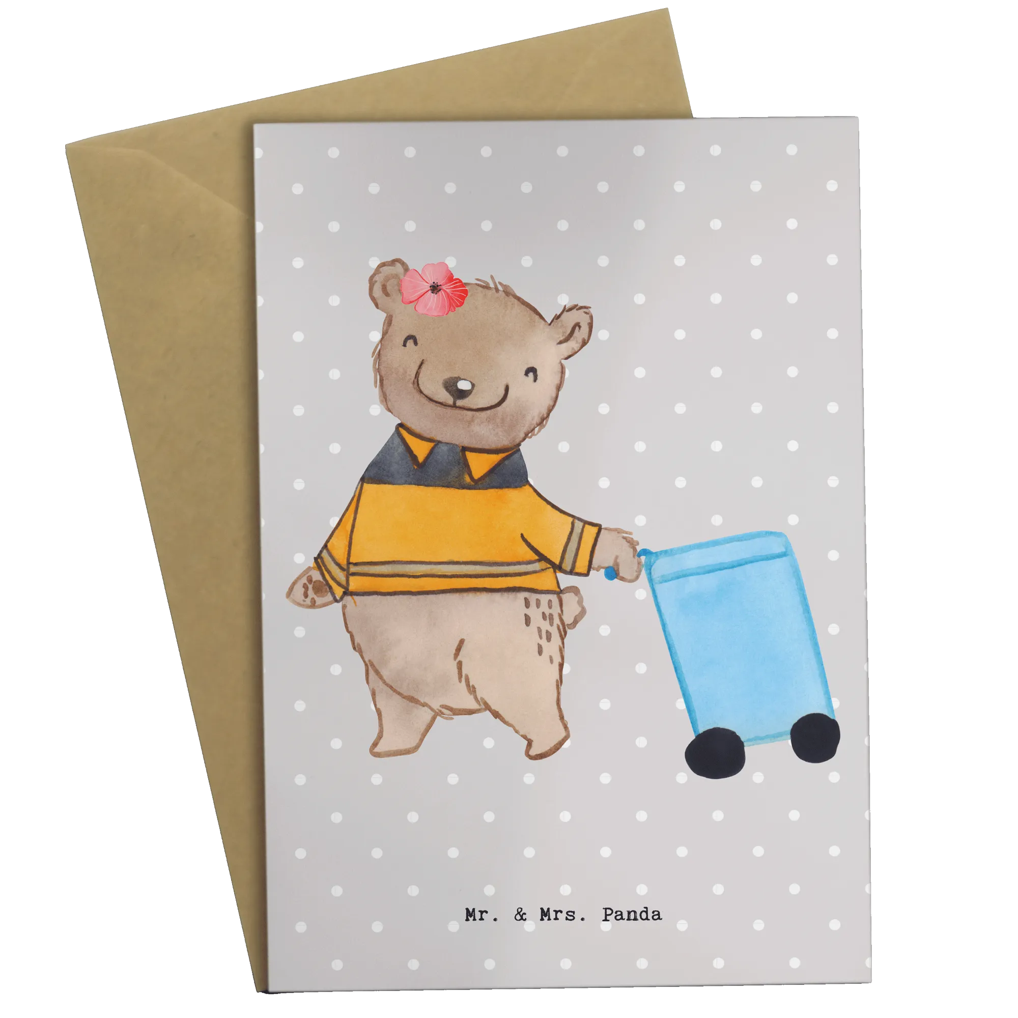 Suchst du nach der perfekten Grußkarte für einen speziellen Müllwerker oder eine Müllwerkerin? Dann ist die Grußkarte 'Fachkraft - Kreislauf- und Abfallwirtschaft mit Herz' von Mr. & Mrs. Panda genau das Richtige! Diese liebevoll gestaltete Karte zeigt ein niedliches Motiv mit einem Bären, der fröhlich eine Mülltonne hinter sich herzieht. Dabei wird die wichtige Arbeit der Fachkräfte für Kreislauf- und Abfallwirtschaft auf eine humorvolle und herzliche Weise gewürdigt.
