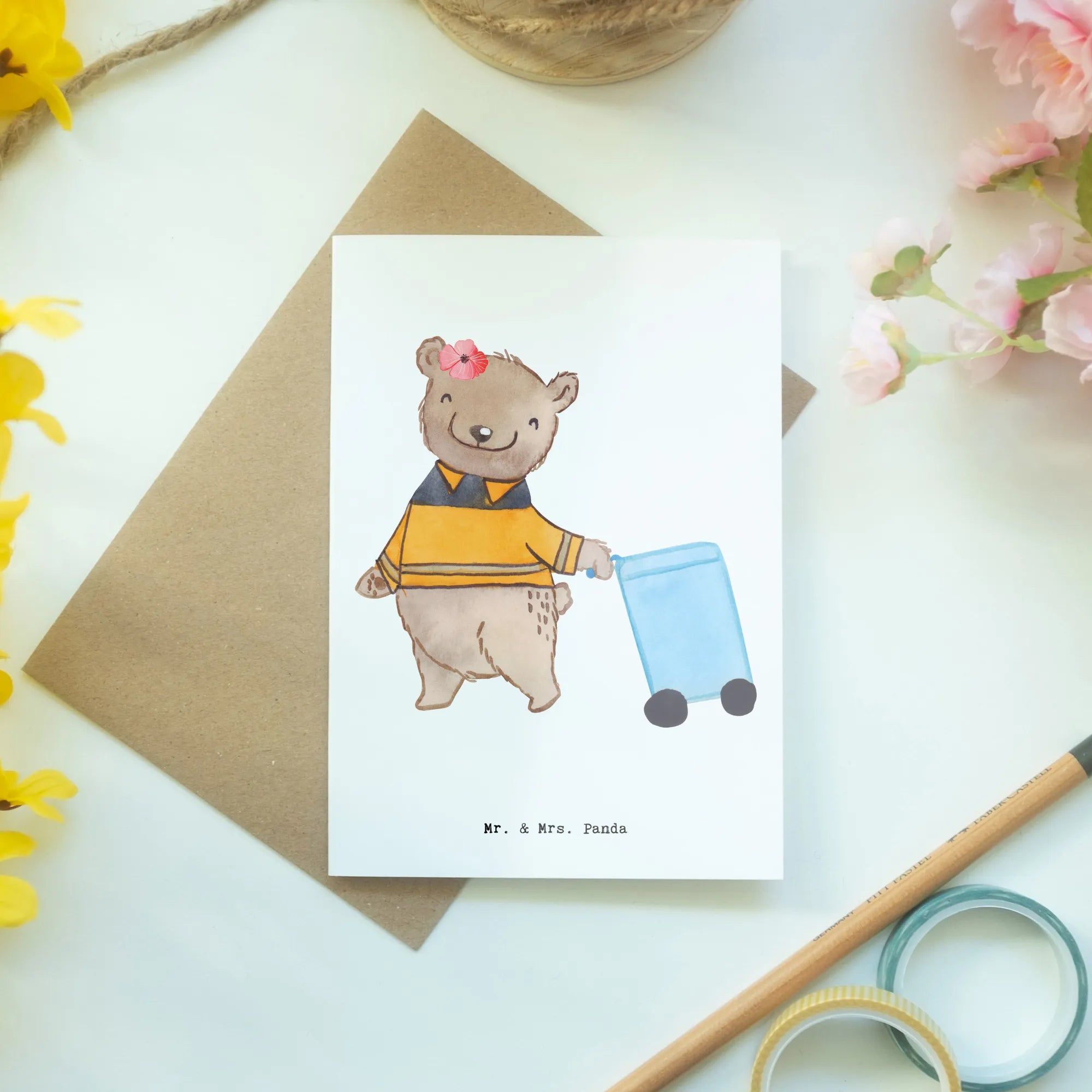 Gemeinsam mit der liebevollen Gestaltung und dem charmanten Spruch machst du mit dieser Grußkarte ein ganz besonderes Geschenk, das in Erinnerung bleibt. Also zögere nicht und bring Freude in den Alltag eines Müllarbeiters oder einer Müllarbeiterin – mit dieser einzigartigen Karte von Mr. & Mrs. Panda gelingt dir das ganz sicher!