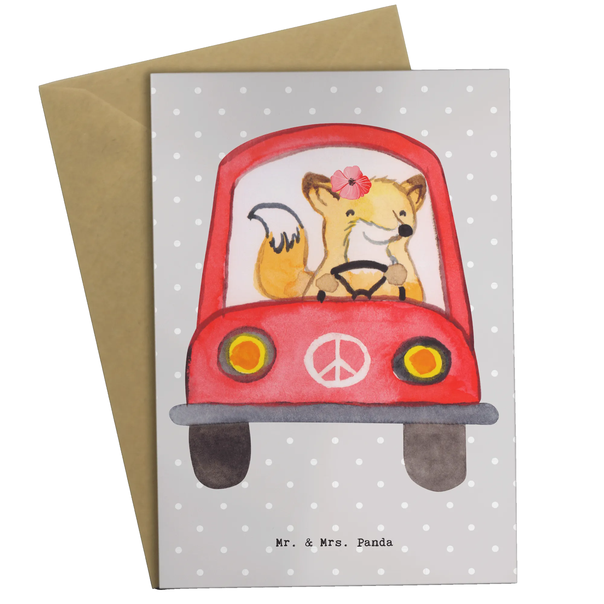 Diese Karte ist ideal, um sich bei deiner Fahrlehrerin nach der bestandenen Fahrprüfung zu bedanken oder um einfach nur mal "Danke" zu sagen. Das bezaubernde Motiv zeigt eine niedliche Fuchsdame am Steuer – einfach zum Verlieben!
