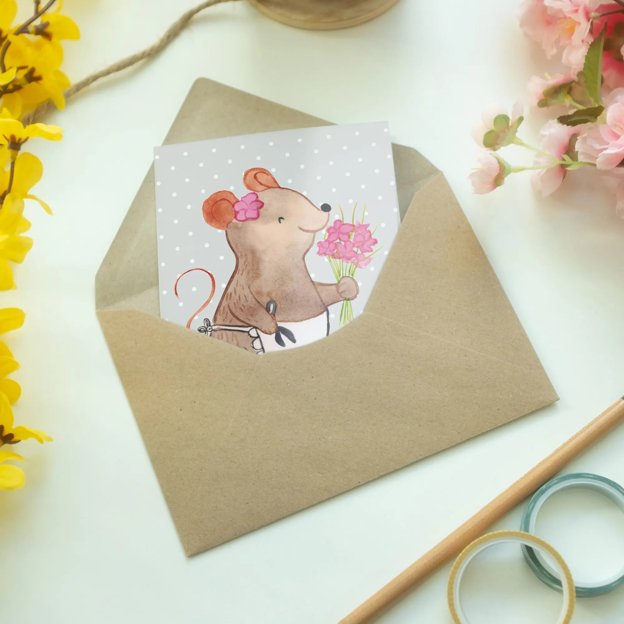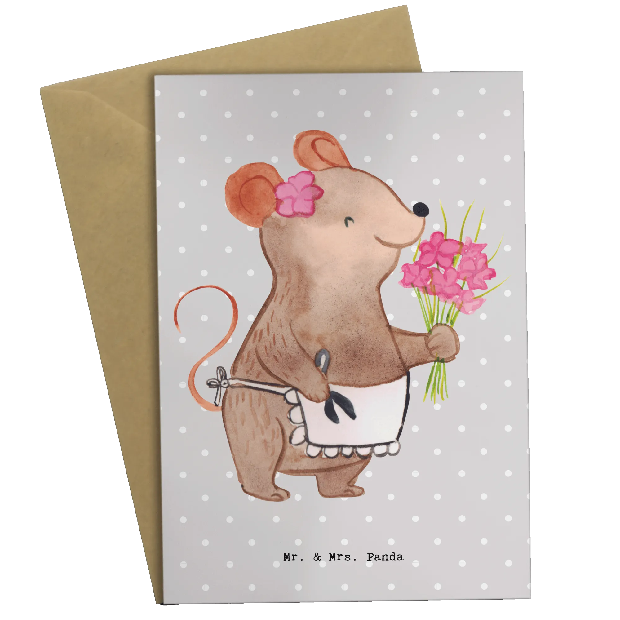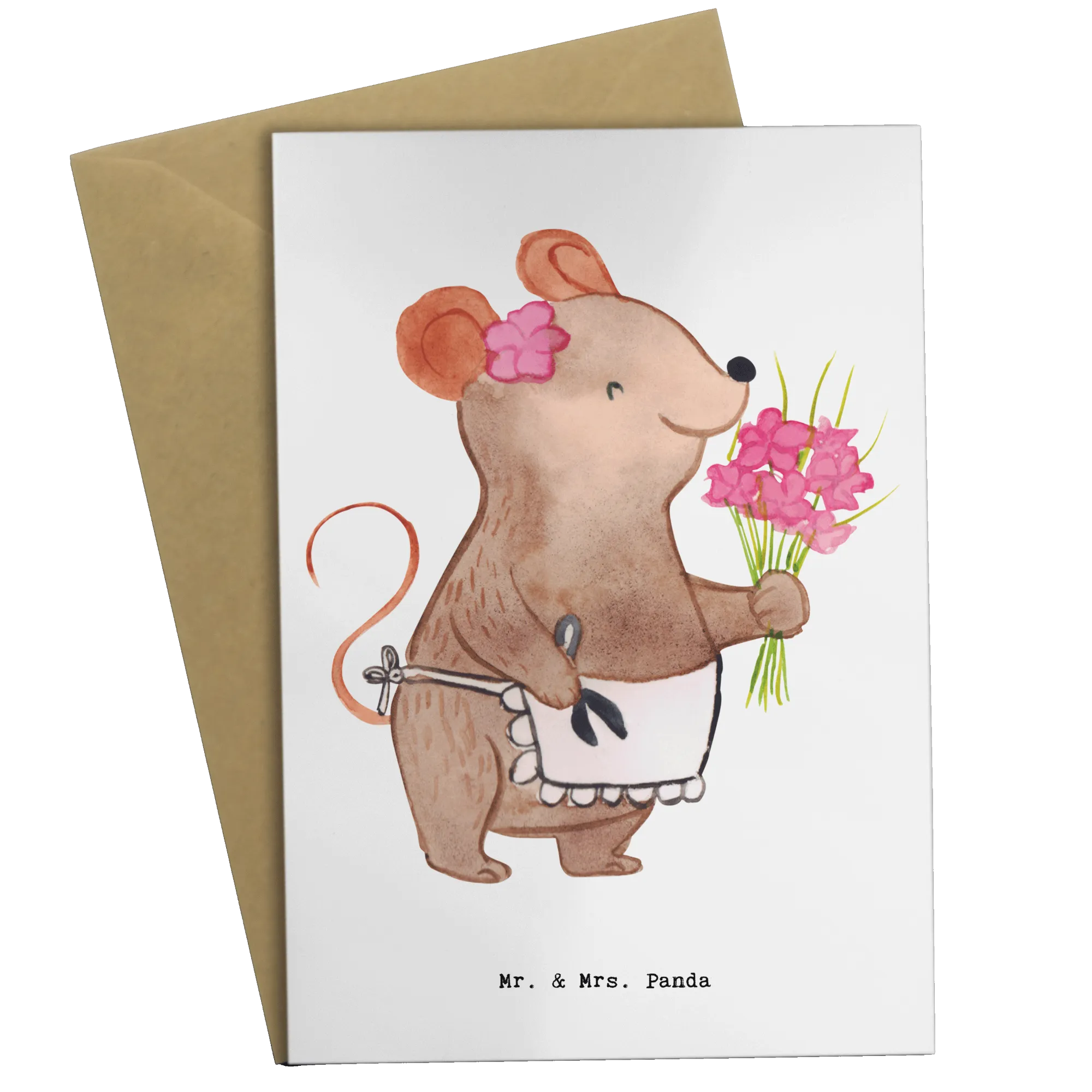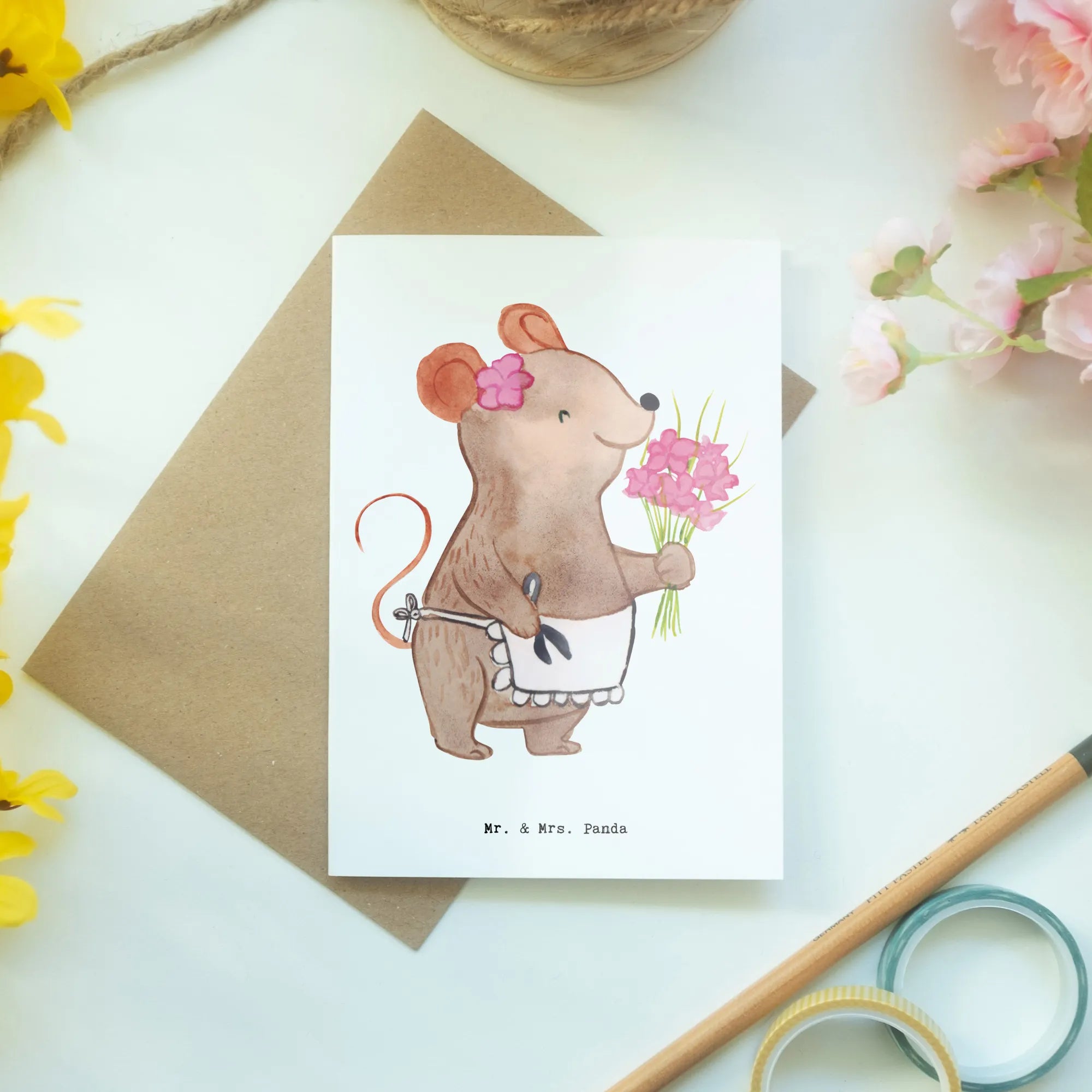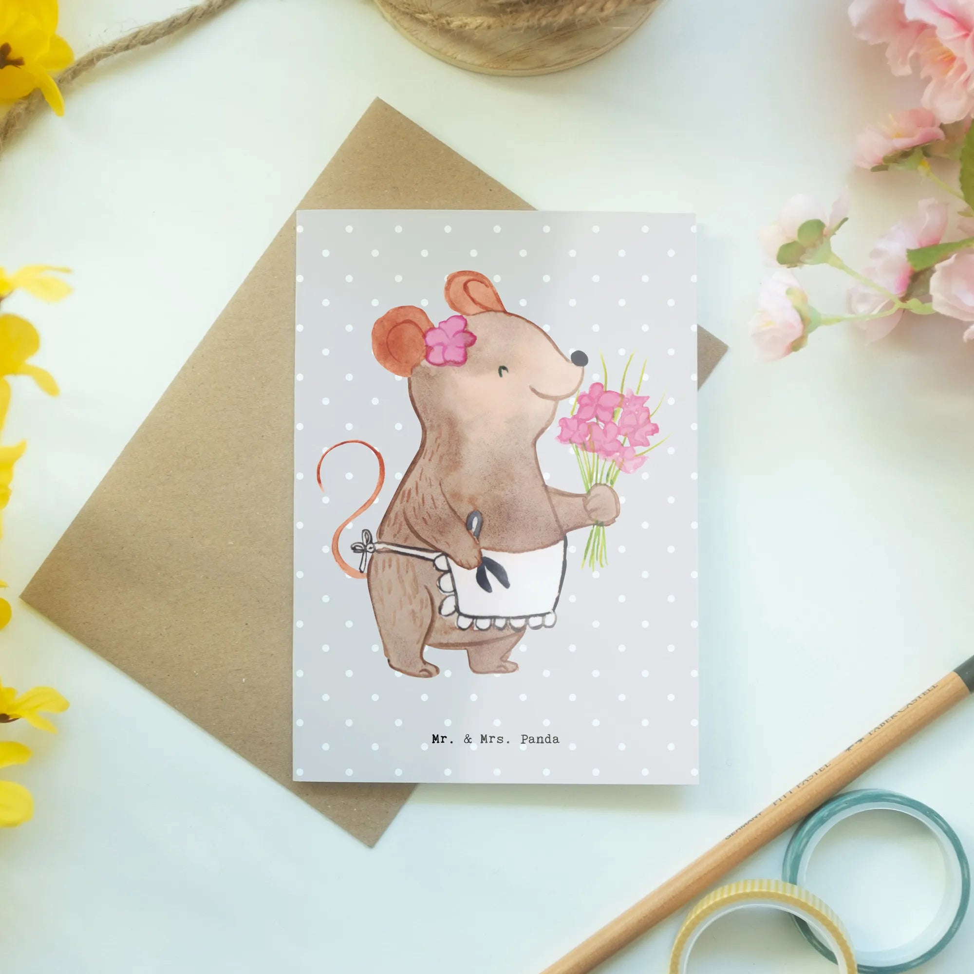 Die Grußkarte "Floristin mit Herz" aus der Berufe Kollektion von Mr. & Mrs. Panda ist das perfekte Geschenk für jeden Blumenliebhaber oder Floristen!