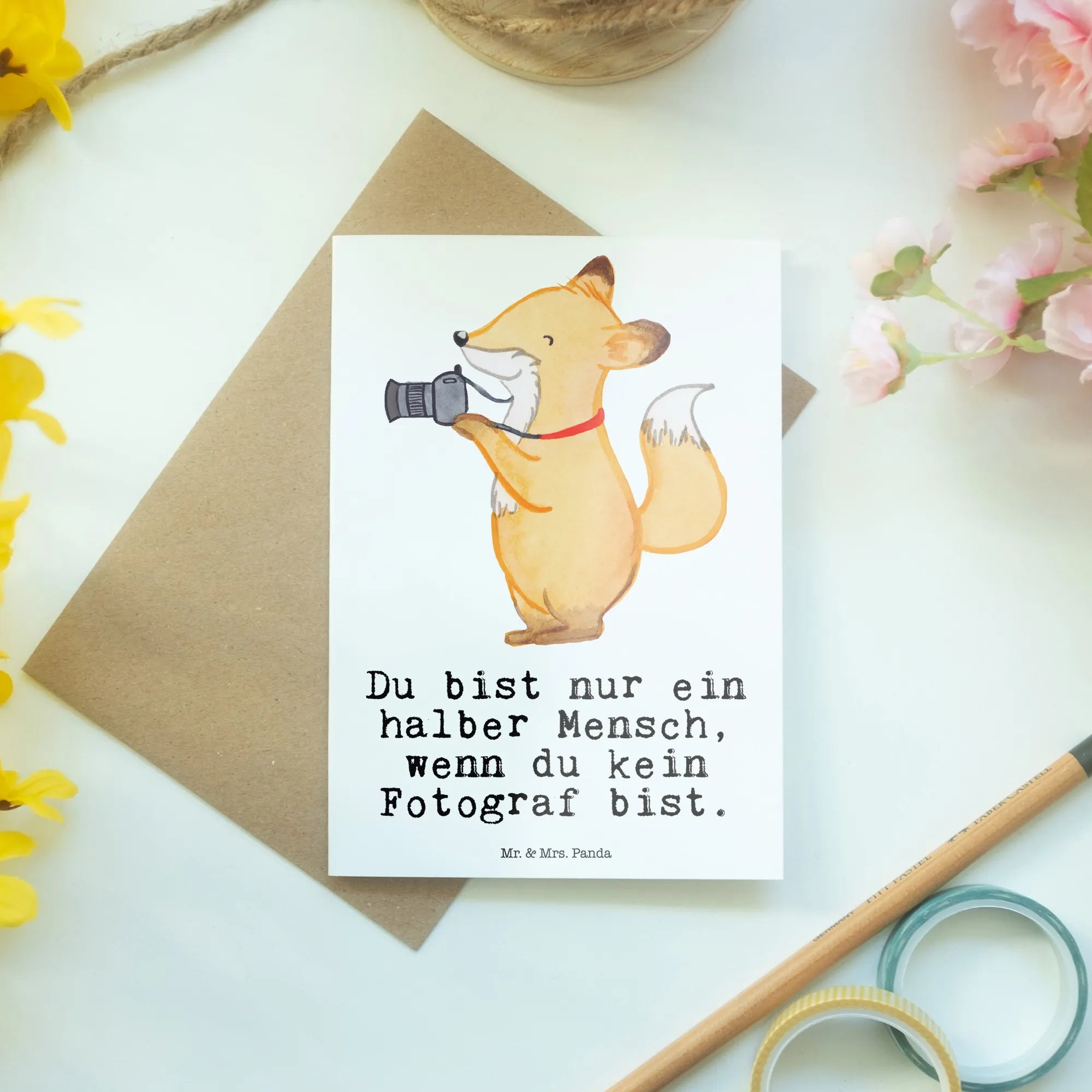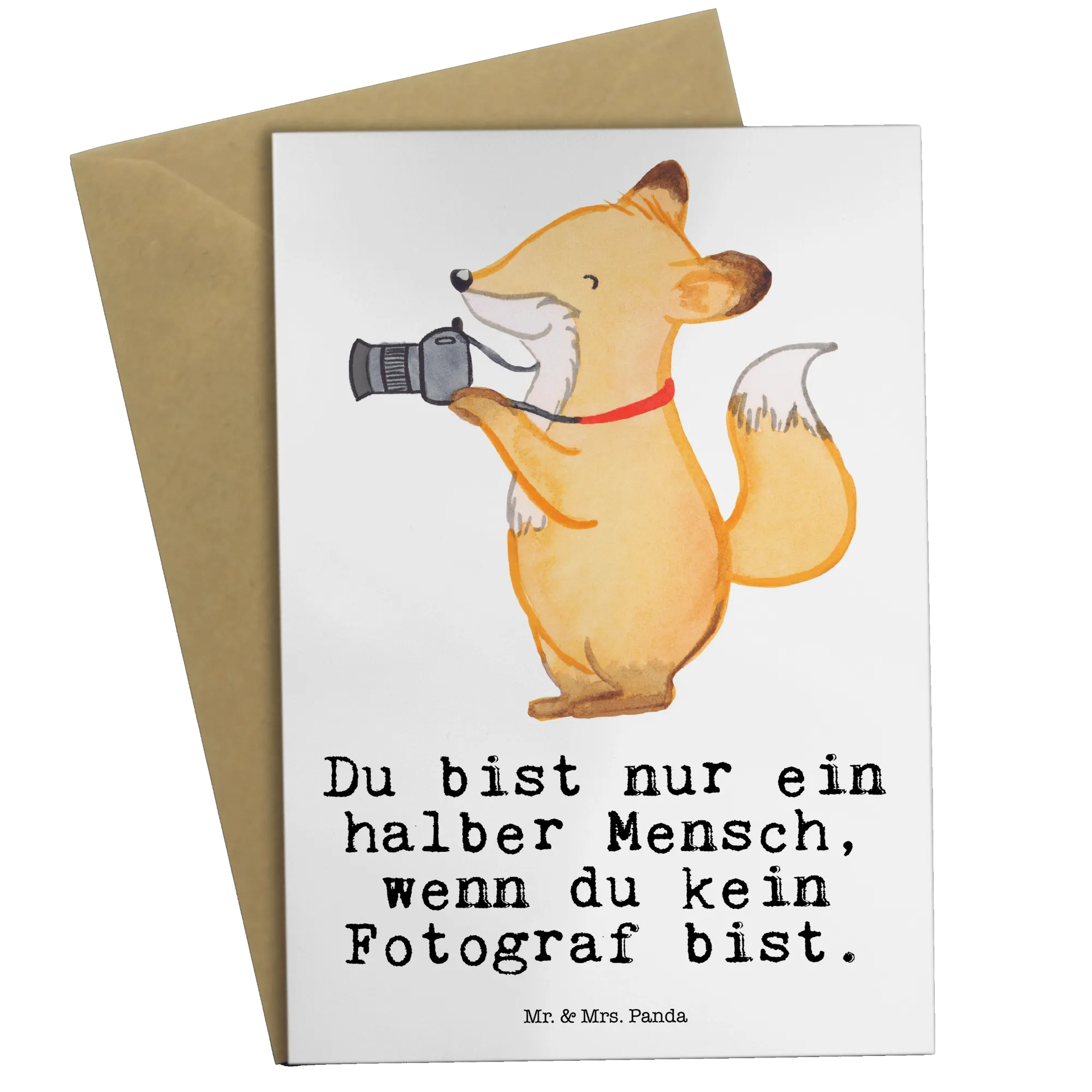 Mit dem niedlichen Motiv eines Fuchses, der eine Kamera um den Hals trägt, und dem liebevoll gestalteten Spruch "Du bist nur ein halber Mensch, wenn du kein Fotograf bist", spricht sie diejenigen an, die die Fotografie aus Leidenschaft betreiben oder im Beruf aktiv sind.