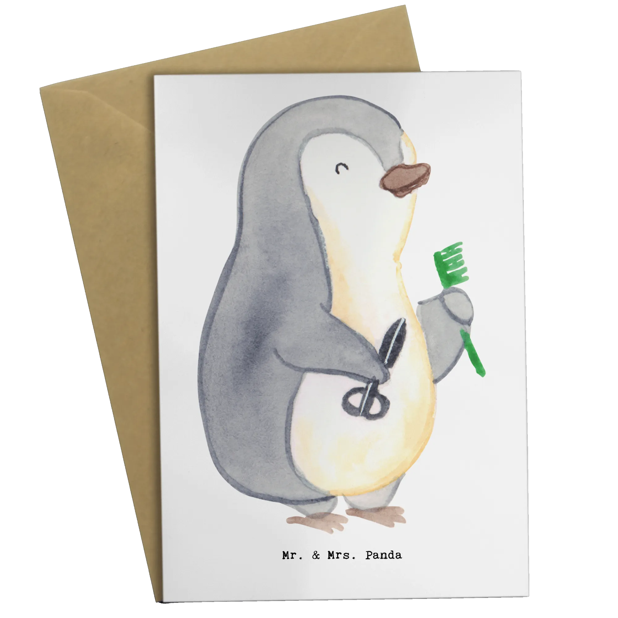 Die wunderschöne Grußkarte "Hairstylist mit Herz" von Mr. & Mrs. Panda ist das perfekte Geschenk für alle Friseure und Hairstylisten, die ihre Leidenschaft fürs Frisieren lieben! Ob zum Geburtstag, zum Jubiläum oder einfach nur als kleines Dankeschön – diese Karte bringt Freude in jeden Friseursalon!