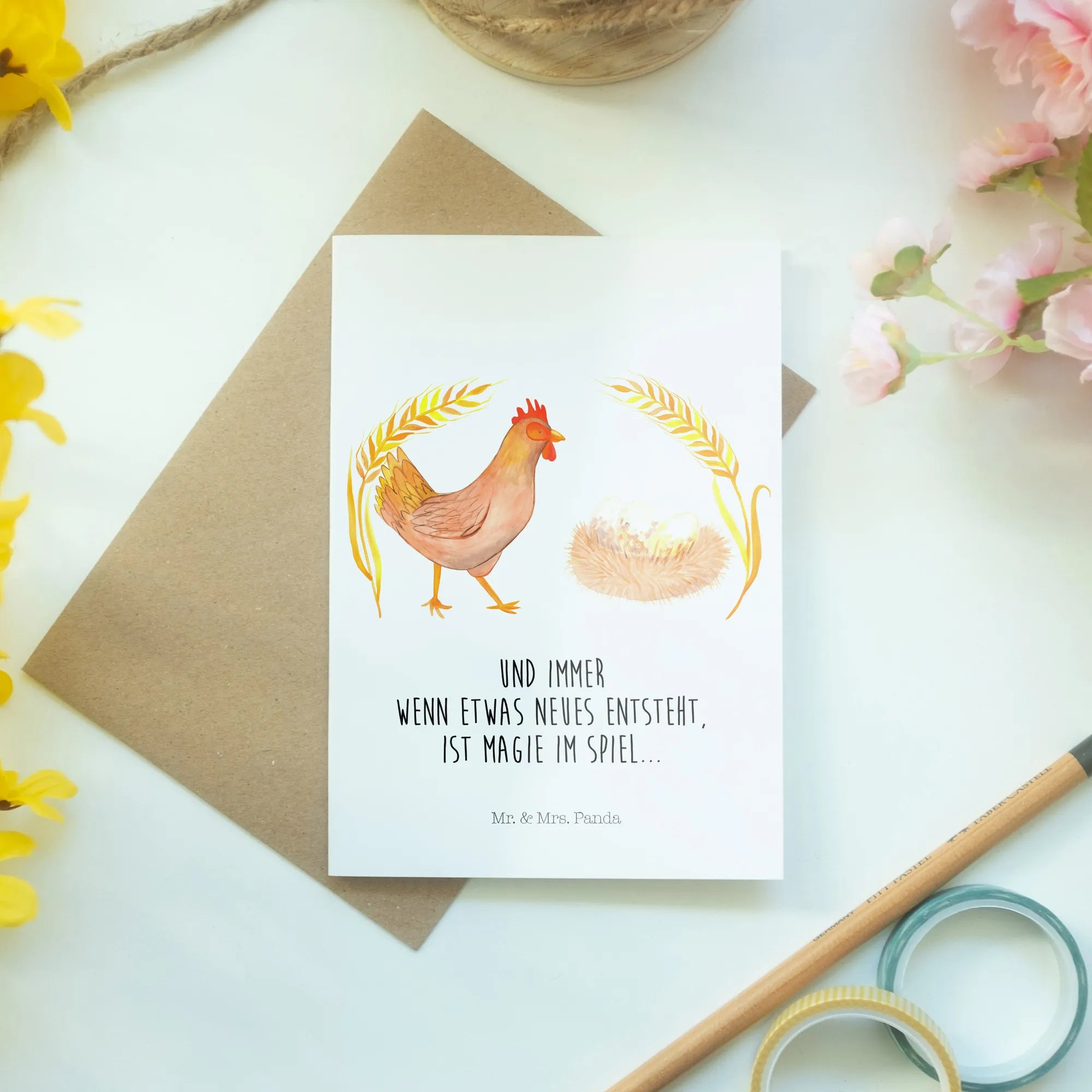 Egal ob für eine Einladung zur Hochzeit, eine liebevolle Geburtstagskarte oder einfach als Glückwunschkarte zur Schwangerschaft – diese Grußkarte mit dem stolzen Huhn aus unserer Bauernhof-Kollektion ist immer eine tolle Wahl. Sie ist ein perfektes Geschenk für Freunde, Familie oder Kollegen und bringt Freude und Glück in jeden Haushalt! Lass die Magie des Landlebens auch bei dir einziehen und bereite deinen Liebsten eine Freude mit dieser einzigartigen Karte von Mr. & Mrs. Panda!