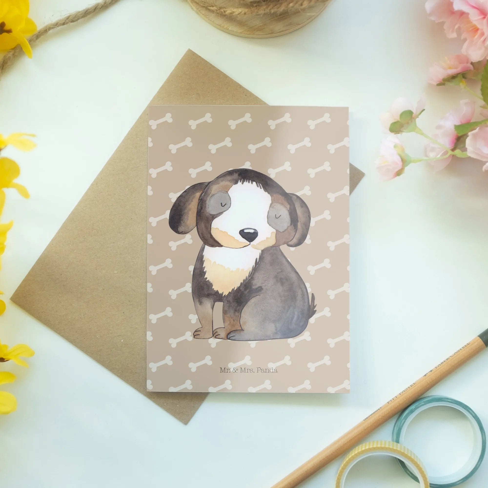 Sei es für deinen besten Freund, der einen Hund hat, oder für dich selbst, um ein Stückchen Freude in dein Zuhause zu bringen. Hol dir diese zauberhafte Grußkarte und bring Licht in das Leben deiner Liebsten oder in dein eigenes. Die niedlichen Designs und die liebevollen Sprüche sind ideal, um die besondere Beziehung zwischen Mensch und Tier zu feiern. Übersende deinen Gruß und erfreue die Herzen deiner Lieben mit dieser besonderen Karte von Mr. & Mrs. Panda!