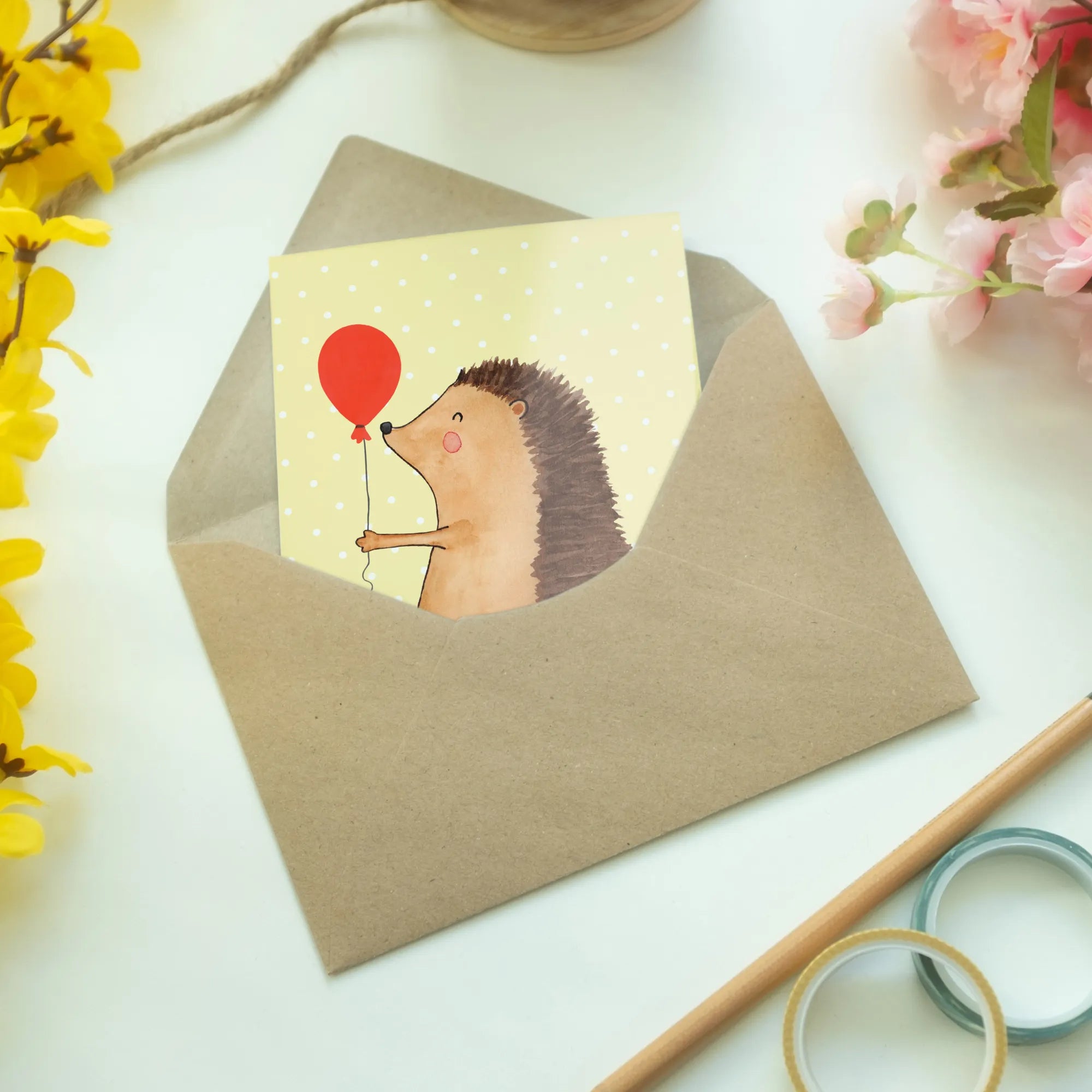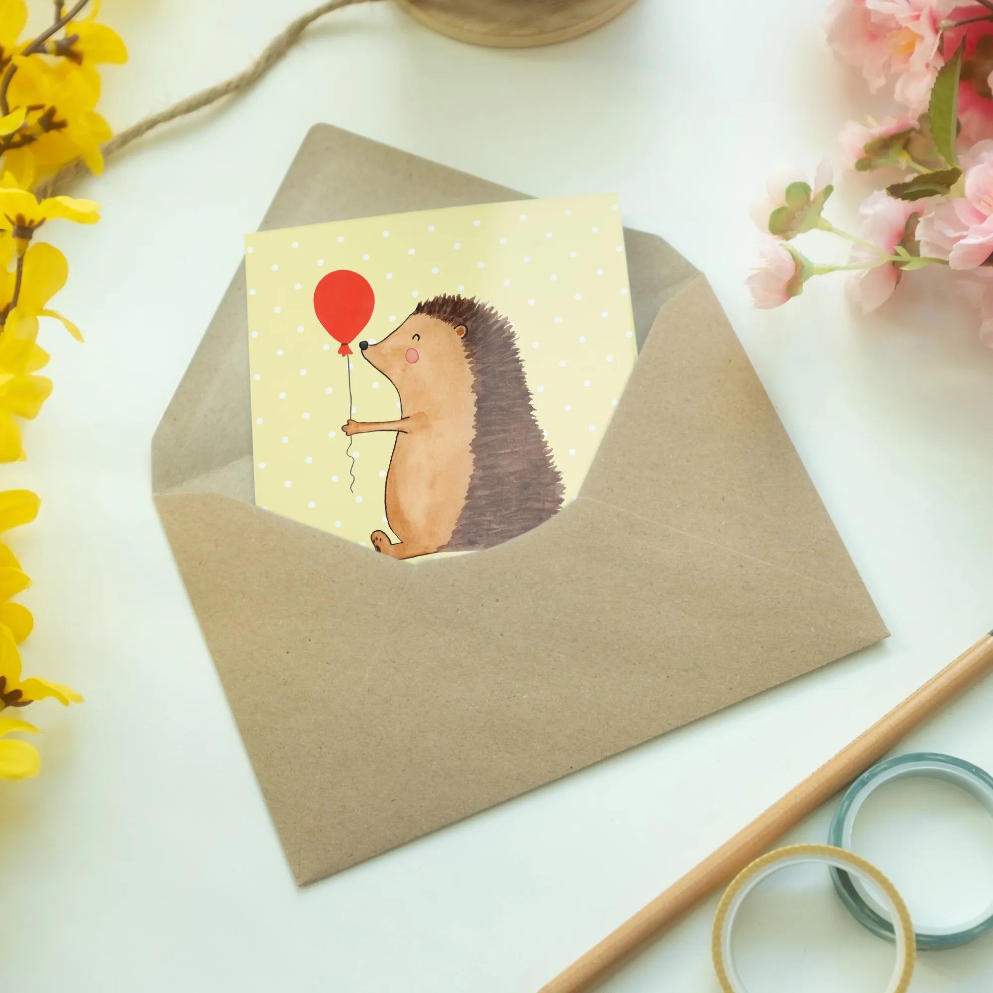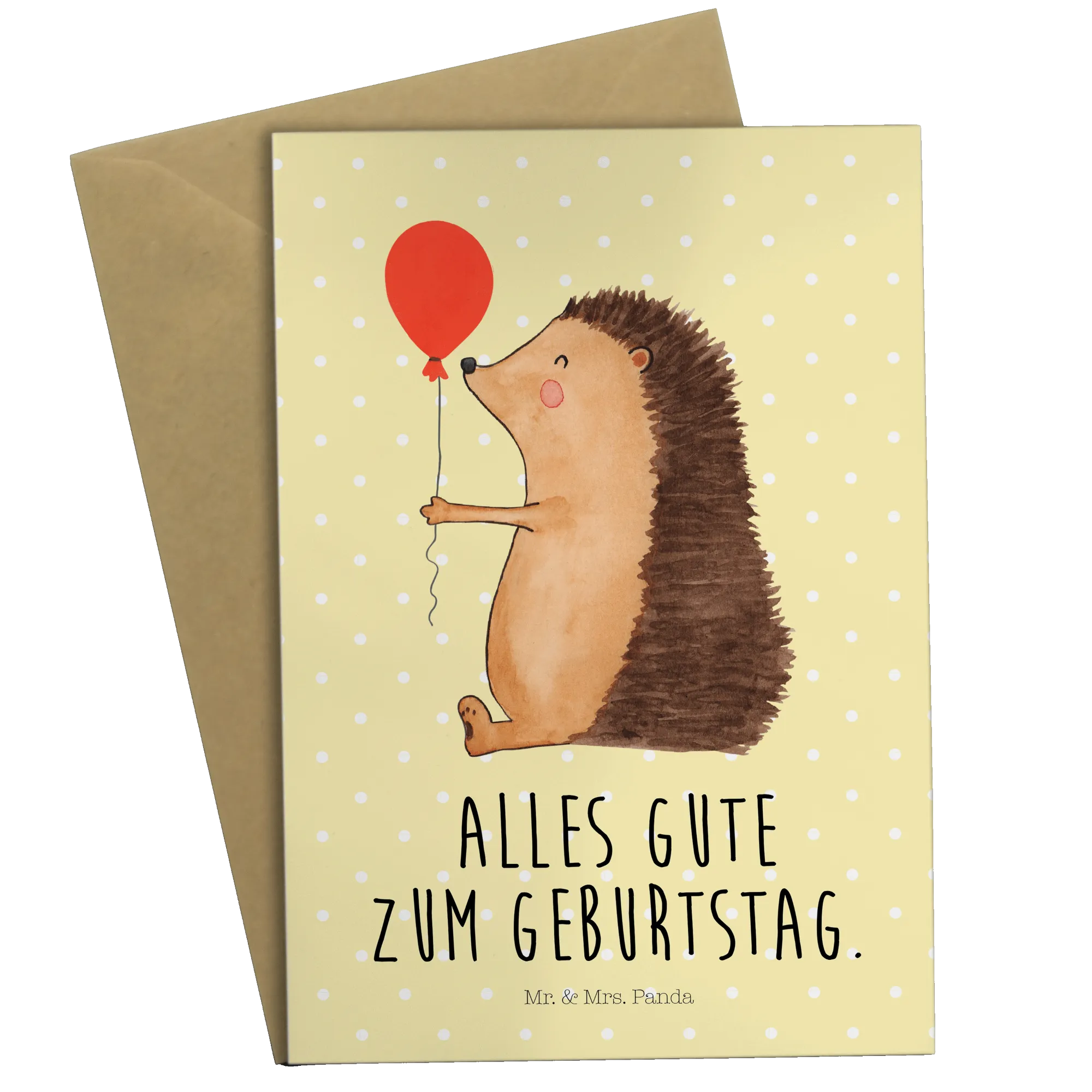 Mr. & Mrs. Panda Botschaftskarte Igel mit Luftballon - Perfekte Geburtstagsüberraschung, Spezieller Gruß
