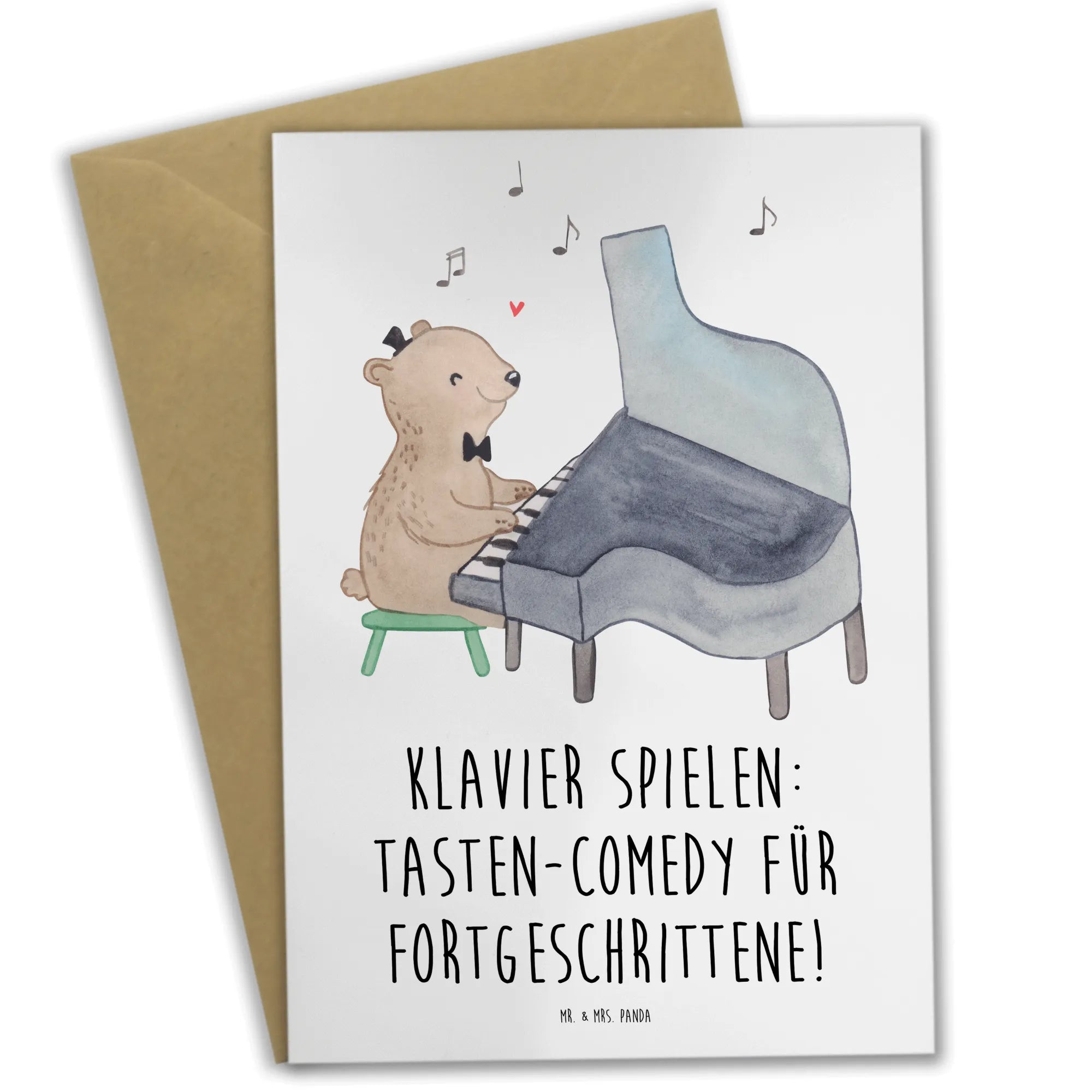 Entdecke die zauberhafte Grußkarte mit dem Motive Klavier aus der besonderen Kollektion "Musizieren & Instrumente" von Mr. & Mrs. Panda. Diese wunderschöne Karte ist nicht nur ein Blickfang, sondern auch das perfekte Geschenk für jeden Musikliebhaber.