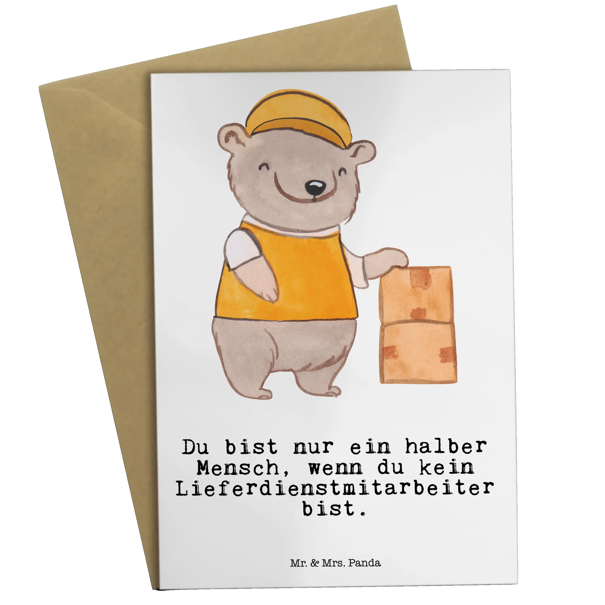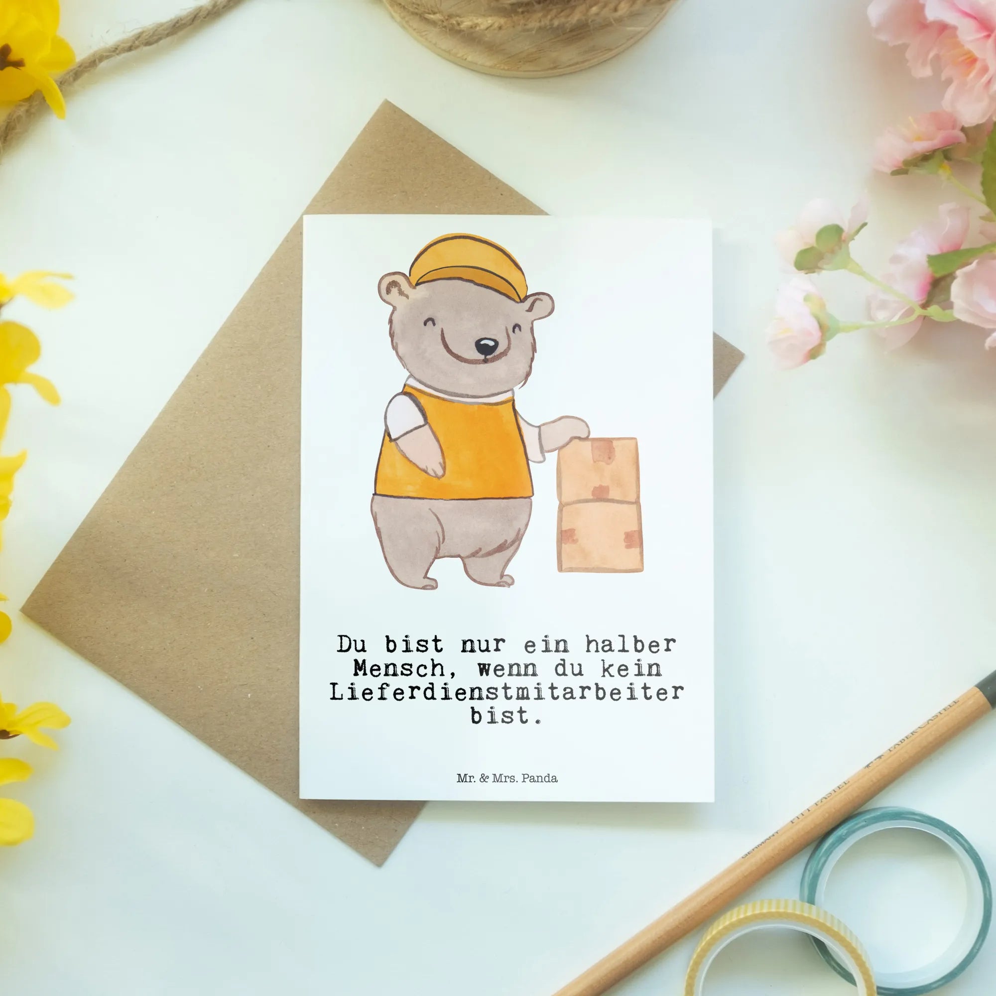 Entdecke die bezaubernde Grußkarte "Lieferdienstmitarbeiter mit Herz" von Mr. & Mrs. Panda!