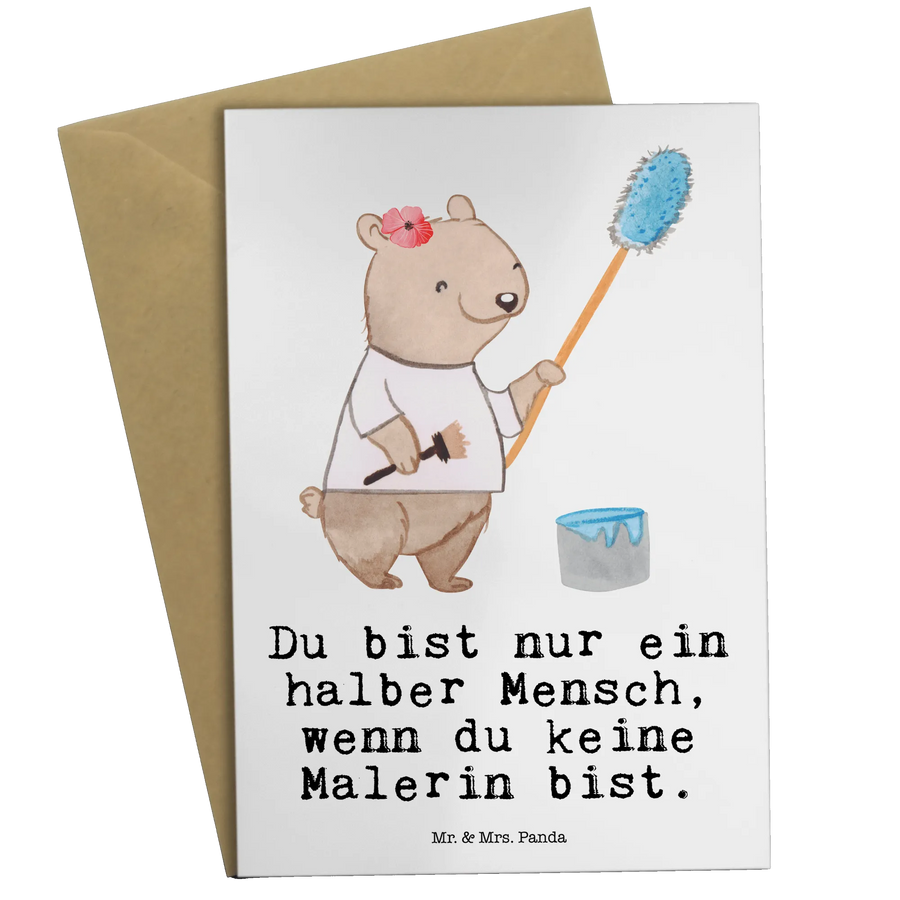 Jedes Detail, von der liebevoll handgezeichneten Illustration bis hin zum eingeknickten Umschlag, zeugt von der hohen Qualität, für die Mr. & Mrs. Panda bekannt sind. Besonders schön ist der Slogan "Du bist nur ein halber Mensch, wenn du keine Malerin bist", der die kreative Seele jedes Malers perfekt einfängt.