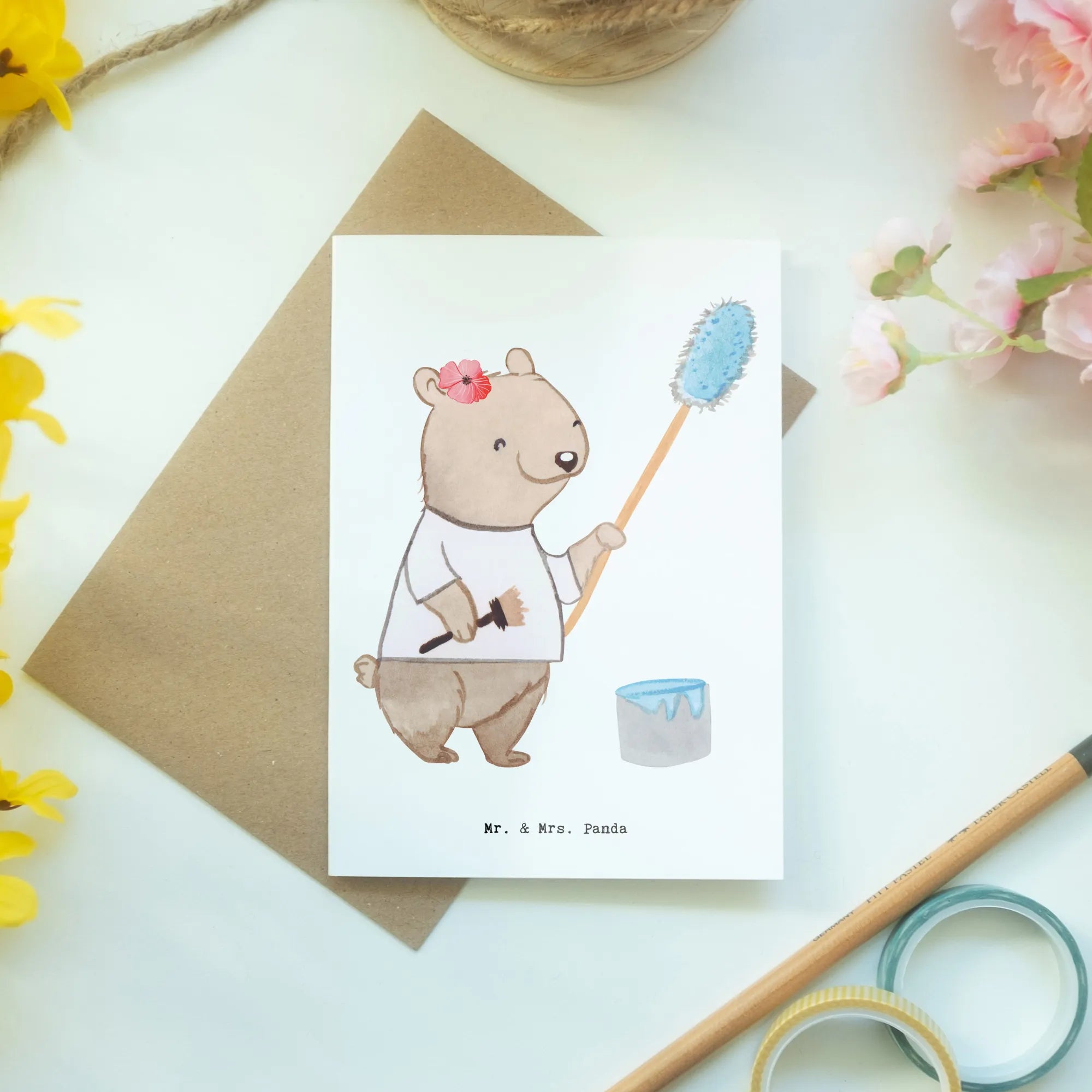 Egal, ob Du eine Malermeisterin oder einen Maler als Freund hast, diese Karte ist das perfekte Geschenk, um eine Verbindung herzustellen. Lass Deiner Kreativität freien Lauf und erfreue Dich und andere mit dieser zauberhaften Grußkarte aus der Kollektion Berufe von Mr. & Mrs. Panda.