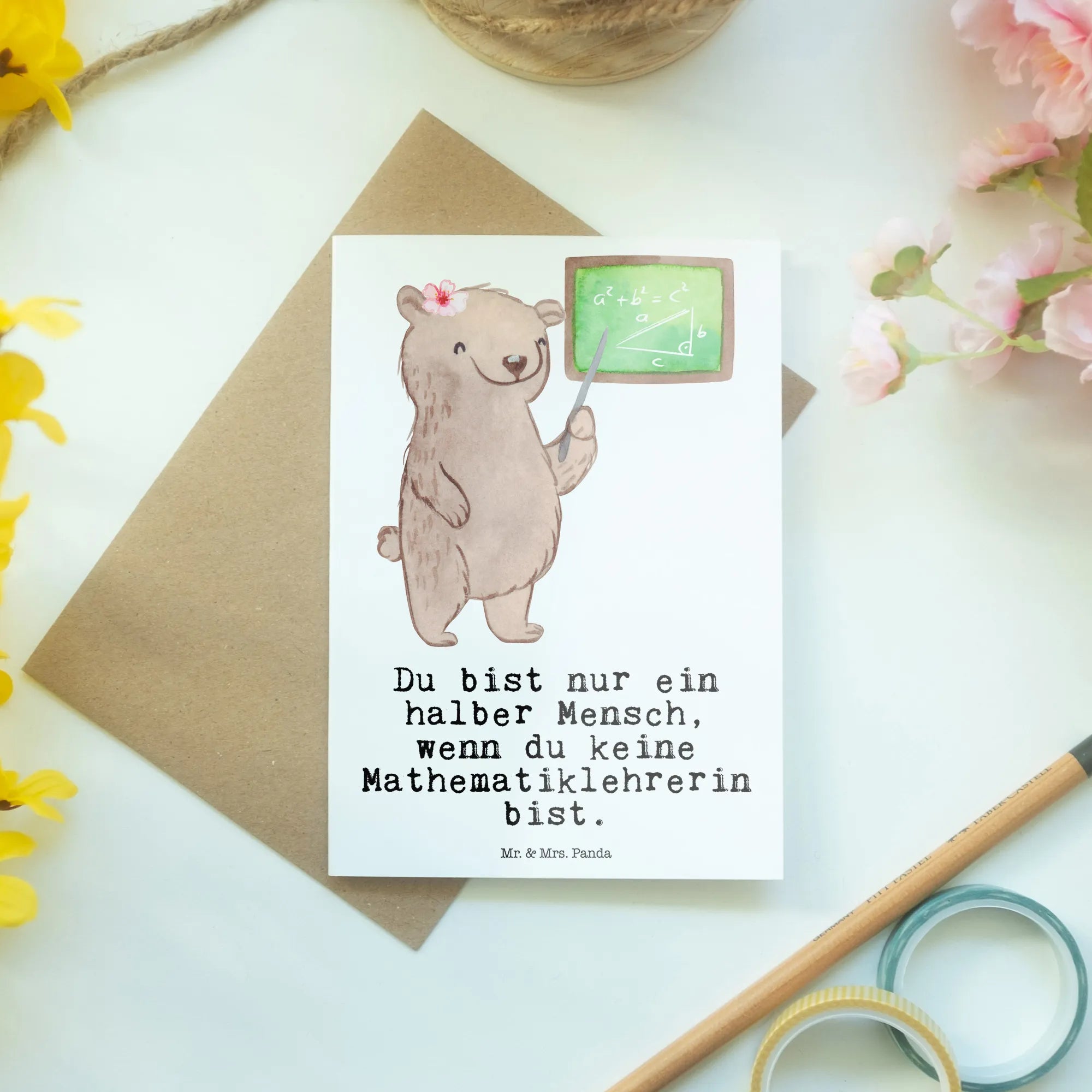 Grußkarte Mathematiklehrerin mit Herz - mit Spruch - Weiß