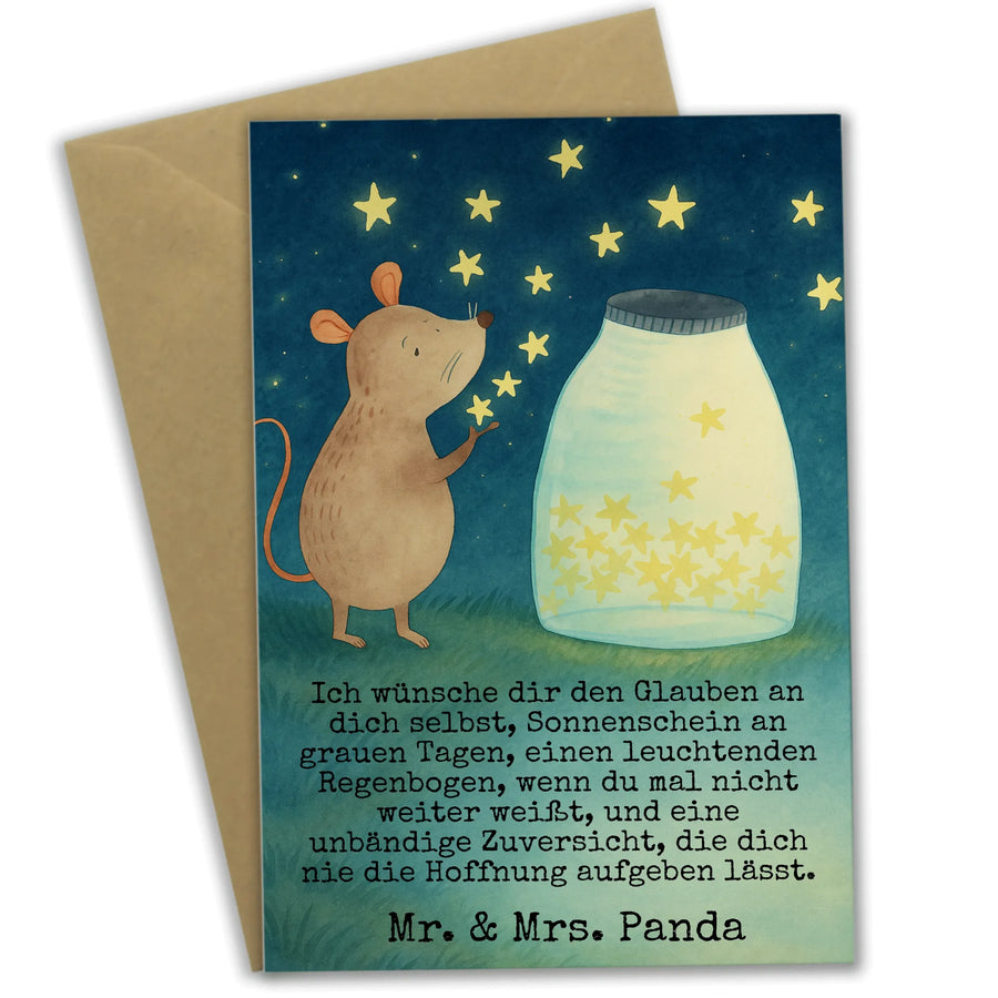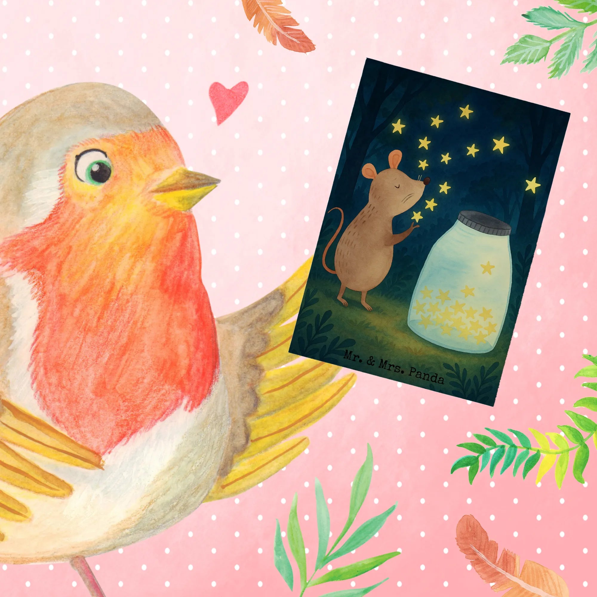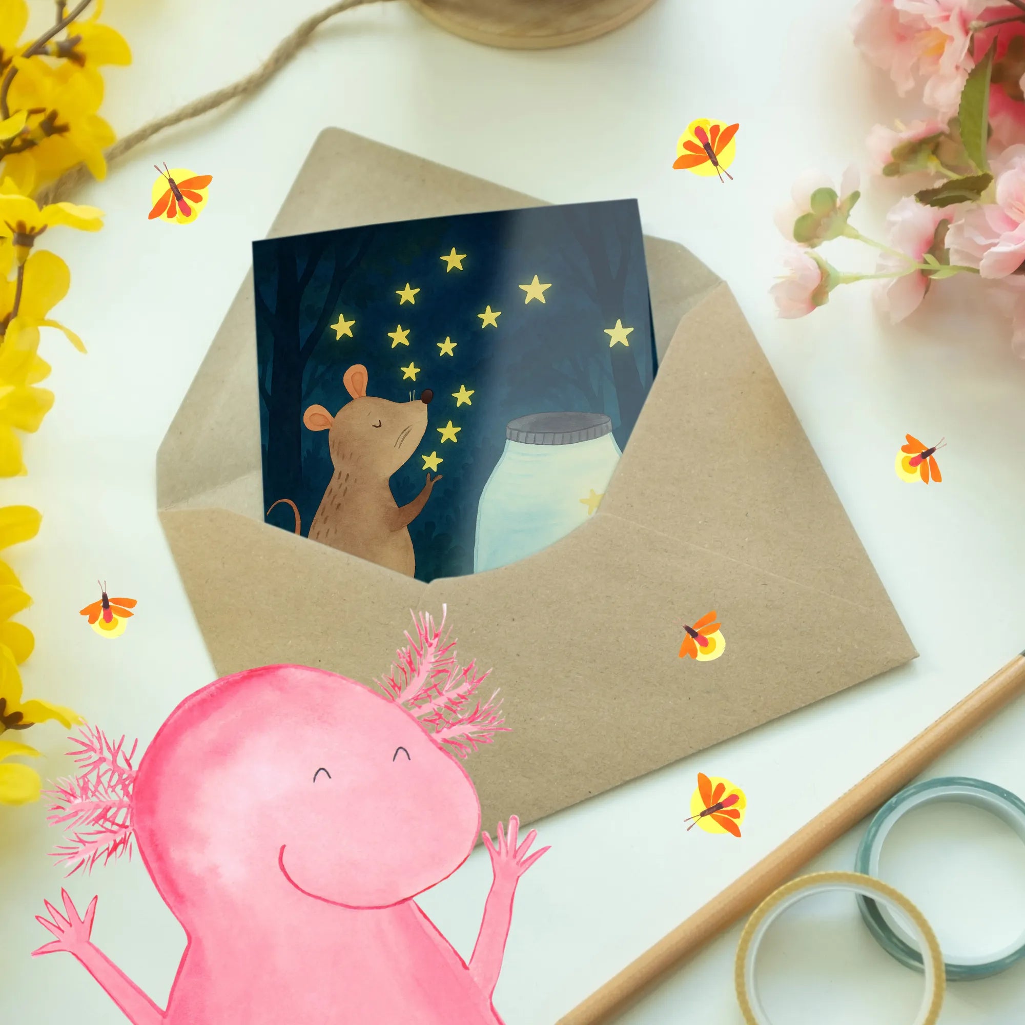 Entdecke eine zauberhafte Karte aus der Small World-Kollektion: Eine kleine Maus sitzt vor einem Glas voller funkelnder Sterne und lässt sie in die Freiheit fliegen. Mit handgezeichneten Aquarell-Details von Mrs. Panda ist dieses Motiv ein kleines Kunstwerk für besondere Momente. ✨