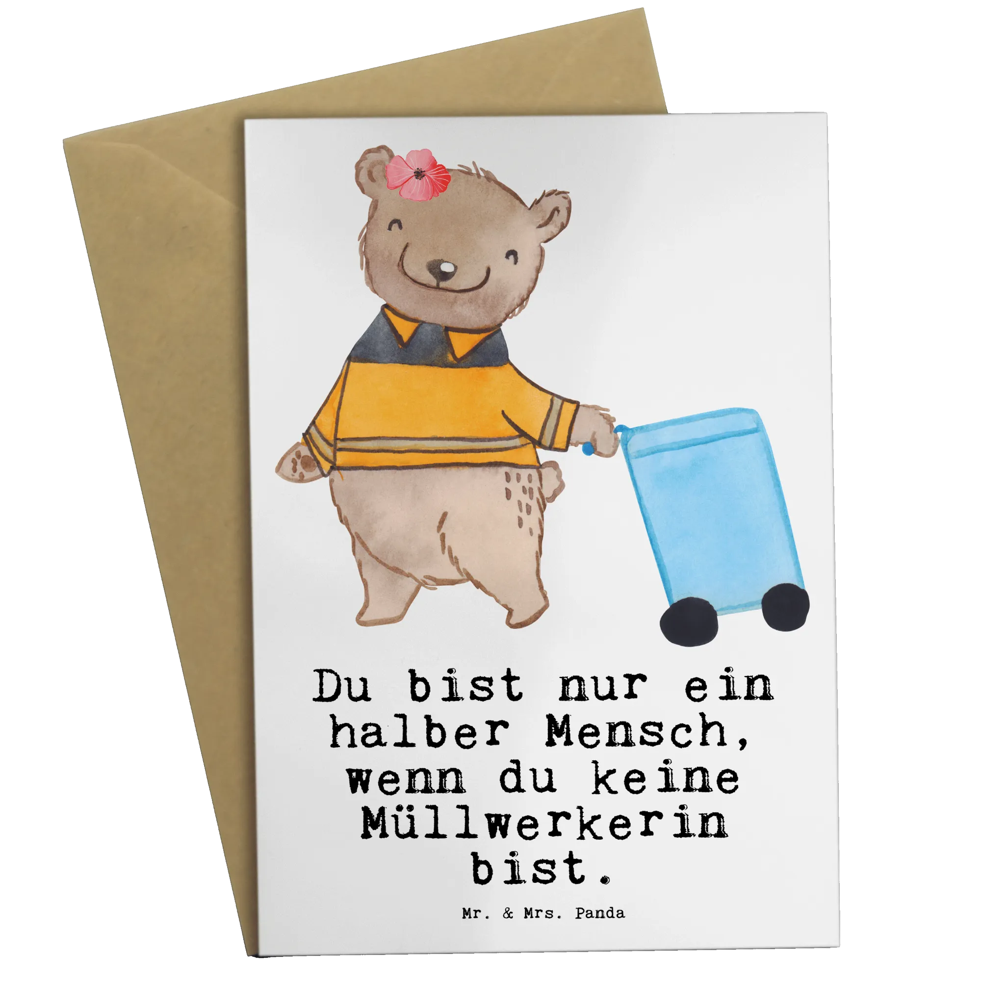 Grußkarte Müllwerkerin mit Herz - mit Spruch - Weiß