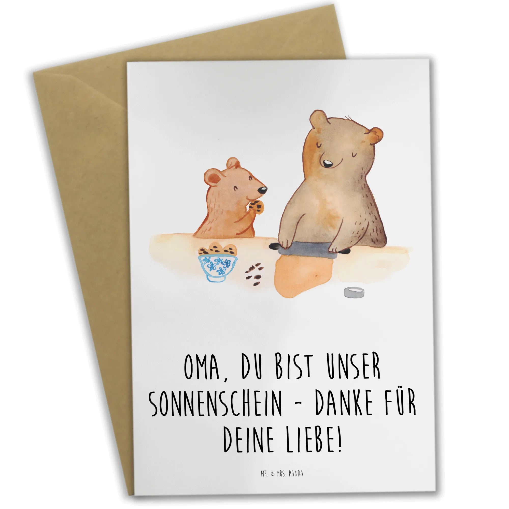 Die wunderschöne Grußkarte von Mr. & Mrs. Panda ist das perfekte Geschenk für all jene, die ihrer Oma von Herzen ''Danke'' sagen möchten. Mit dem liebevollen Motiv ''Oma, du bist unser Sonnenschein - danke für deine Liebe!'' zaubert diese Klappkarte ein Lächeln ins Gesicht jeder Großmutter. Egal, ob zum Geburtstag, zur Hochzeit, als Aufmerksamkeit oder einfach nur so zwischendurch – diese Karte ist immer eine großartige Wahl, um die Liebe und Dankbarkeit auszudrücken.