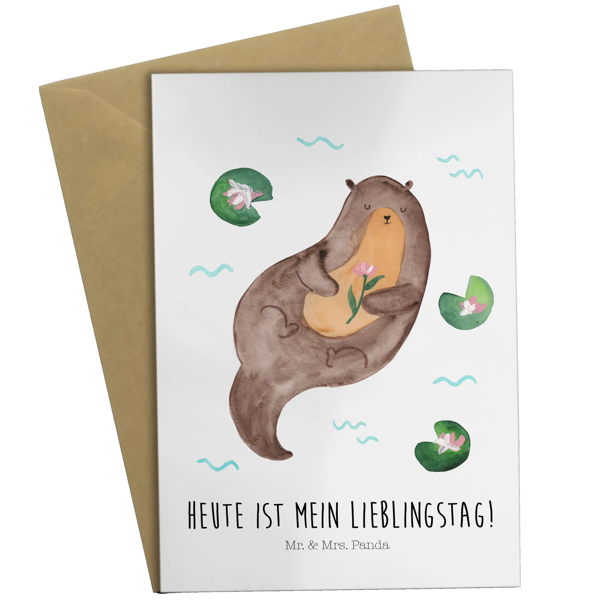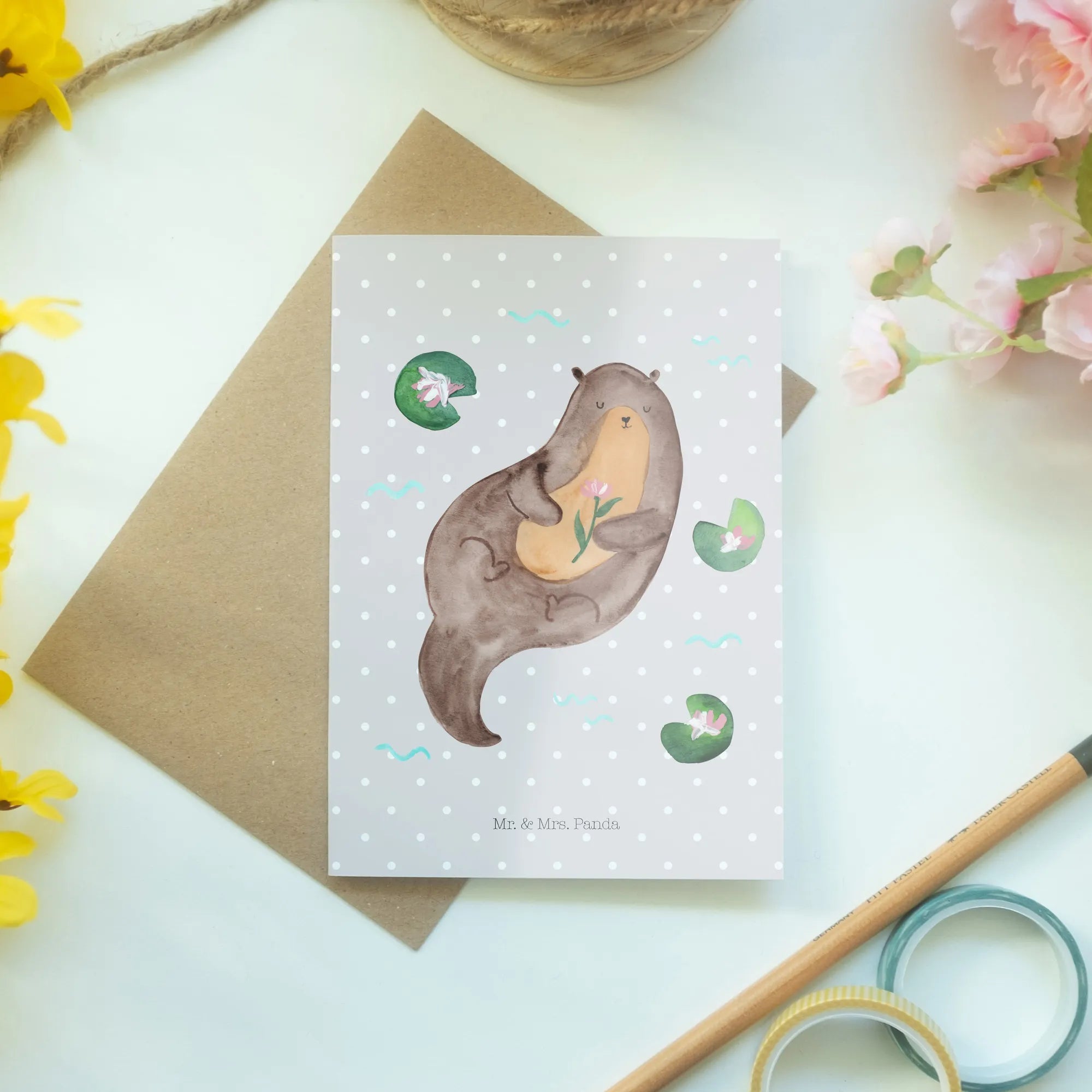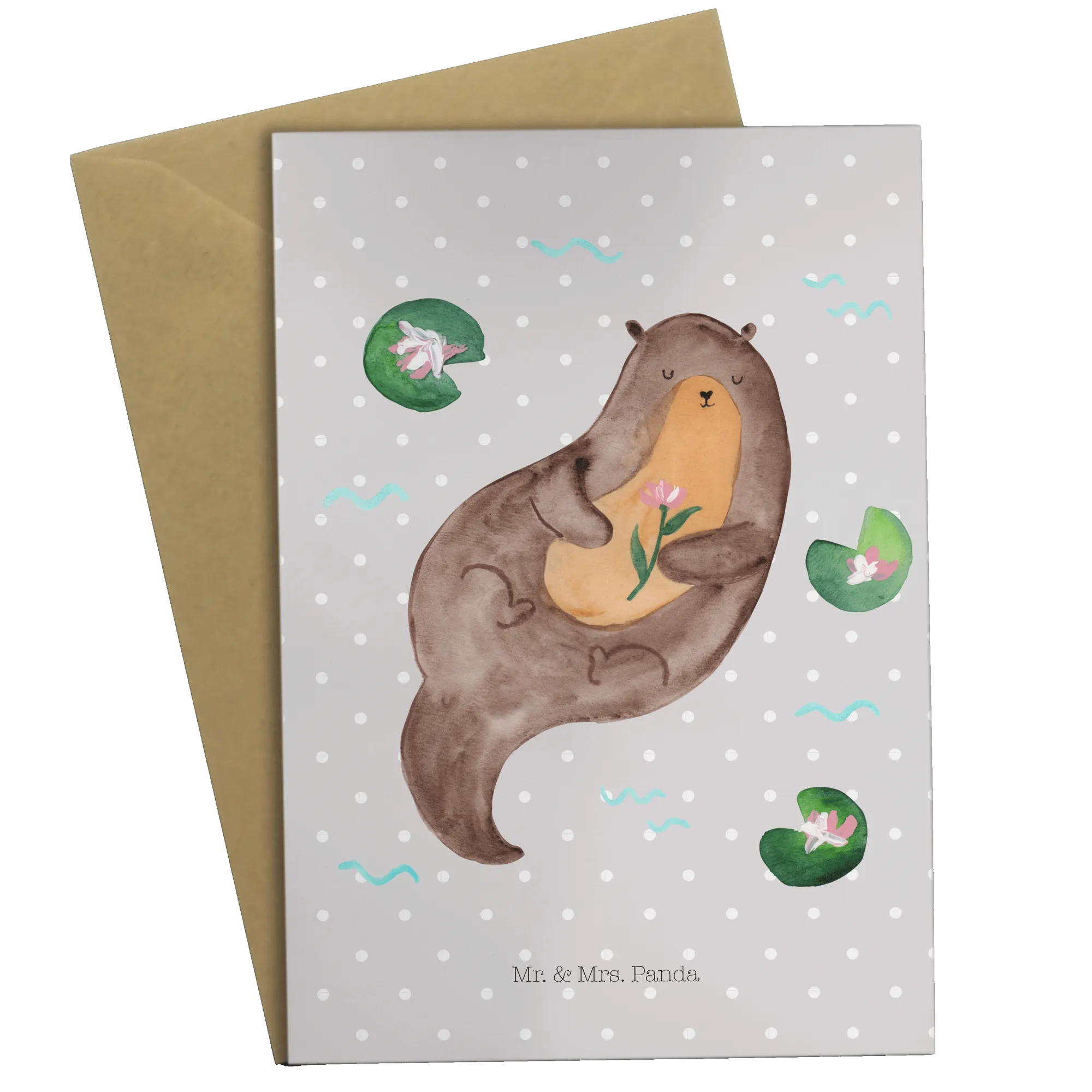 Mit dieser liebevoll gestalteten Grußkarte 'Otter mit Seerose' aus der bezaubernden Otter-Kollektion von Mr. & Mrs. Panda machst Du garantiert jedem eine Freude!