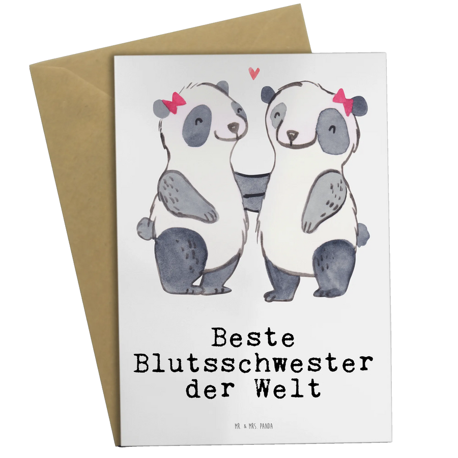 Die Grußkarte "Beste Blutsschwester der Welt" von Mr. & Mrs. Panda ist das ideale Geschenk für alle, die eine ganz besondere Verbindung zu ihrer Schwester haben. Ob zum Geburtstag, als Dankeschön oder einfach nur, um mal wieder "Hallo" zu sagen – diese Karte zaubert garantiert ein Lächeln ins Gesicht!