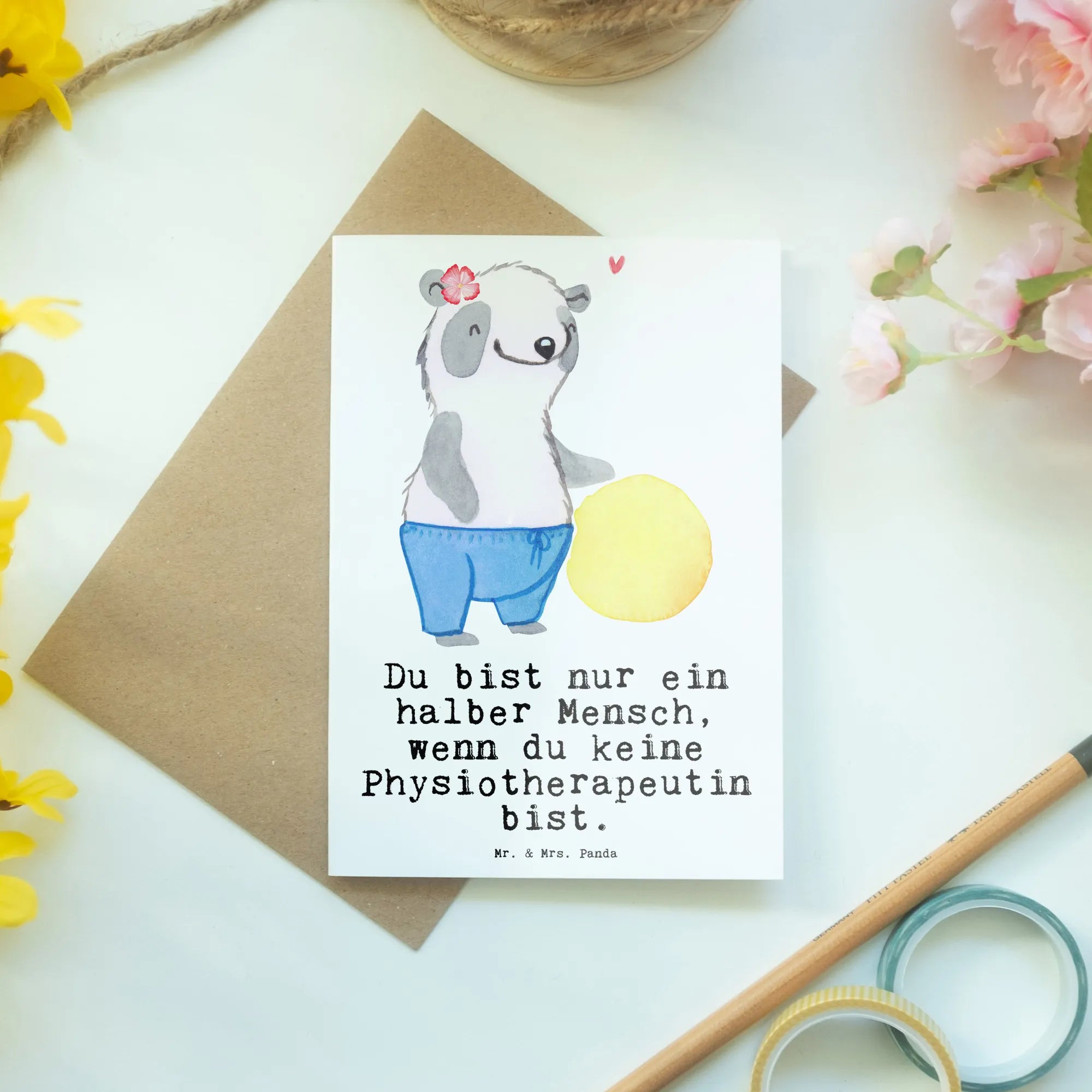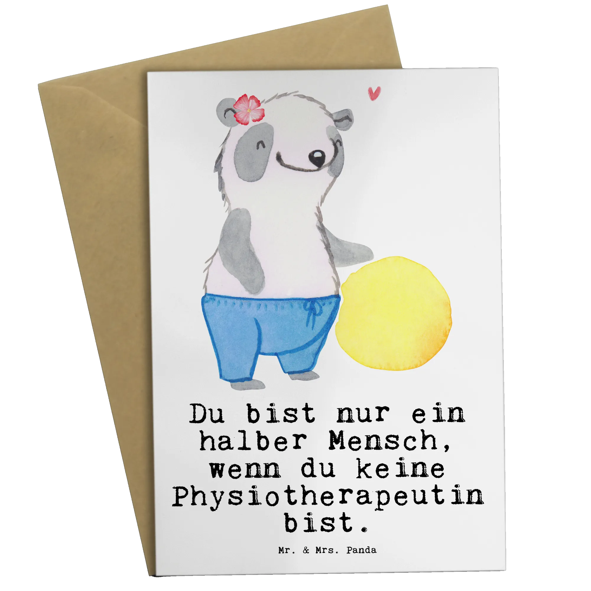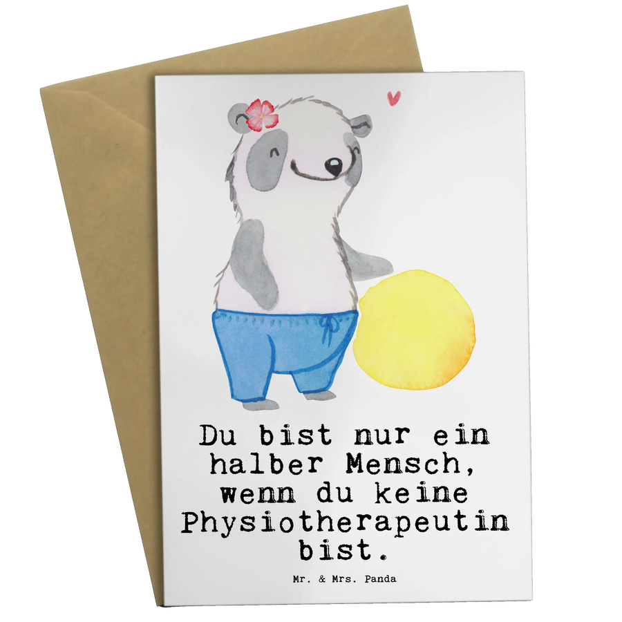 Du suchst nach einem perfekten Geschenk für eine Physiotherapeutin oder einen Physiotherapeuten? Dann ist unsere wunderschöne Grußkarte mit dem Motiv "Physiotherapeutin mit Herz" aus der einzigartigen Berufe Kollektion von Mr. & Mrs. Panda genau das Richtige für dich!