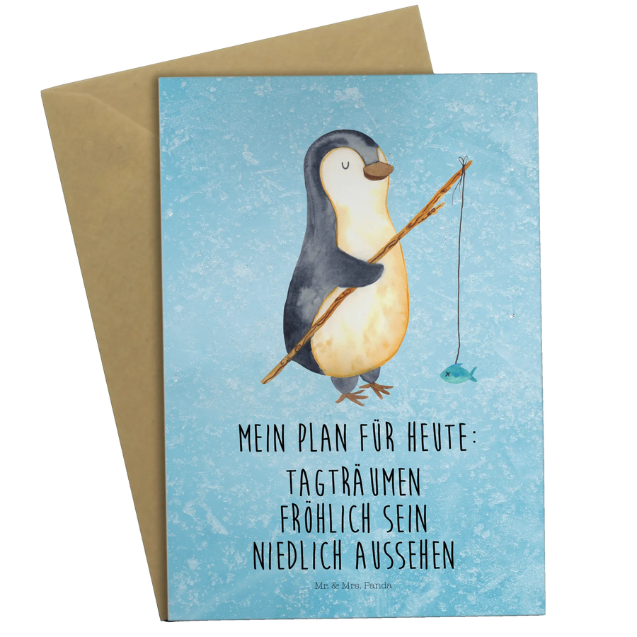 Die Grußkarte mit dem fröhlichen Pinguin Angler aus der Pinguin-Kollektion von Mr. & Mrs. Panda ist das perfekte Geschenk für alle, die es lieben, die Natur zu erkunden und Tagträume zu hegen. Diese Karte ist nicht nur eine einfache Grußkarte, sondern auch ein kleiner Motivationsschub für die Träumer und Angler unter uns.