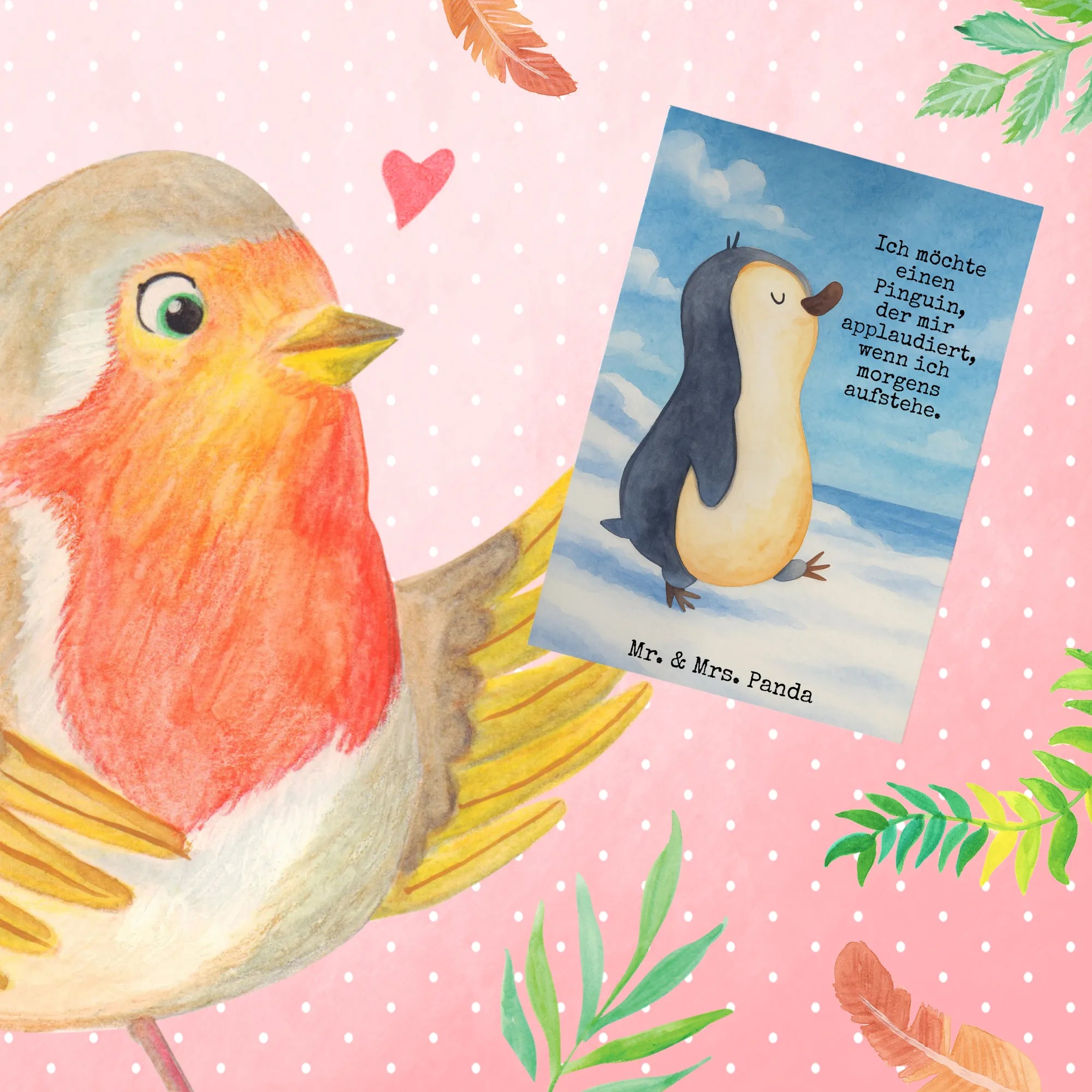 Mr. & Mrs. Panda Motiv mit Applaudierendem Pinguin - Aufmunterung für Morgenmuffel