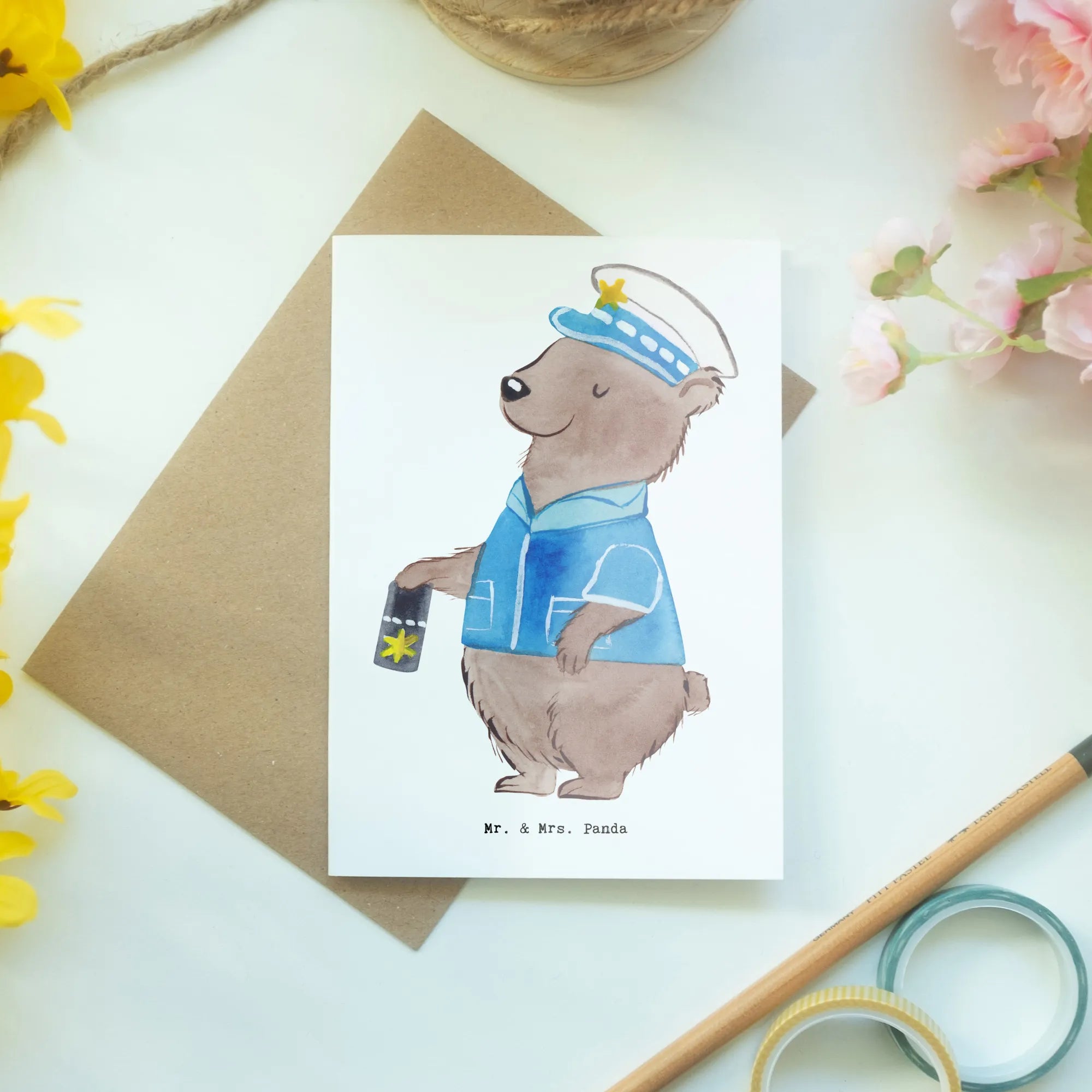 Du suchst das perfekte Geschenk für einen Polizeivollzugsbeamten oder eine Polizeivollzugsbeamtin? Dann ist die Grußkarte mit dem Motiv "Polizeivollzugsbeamter mit Herz" von Mr. & Mrs. Panda genau das Richtige für dich!