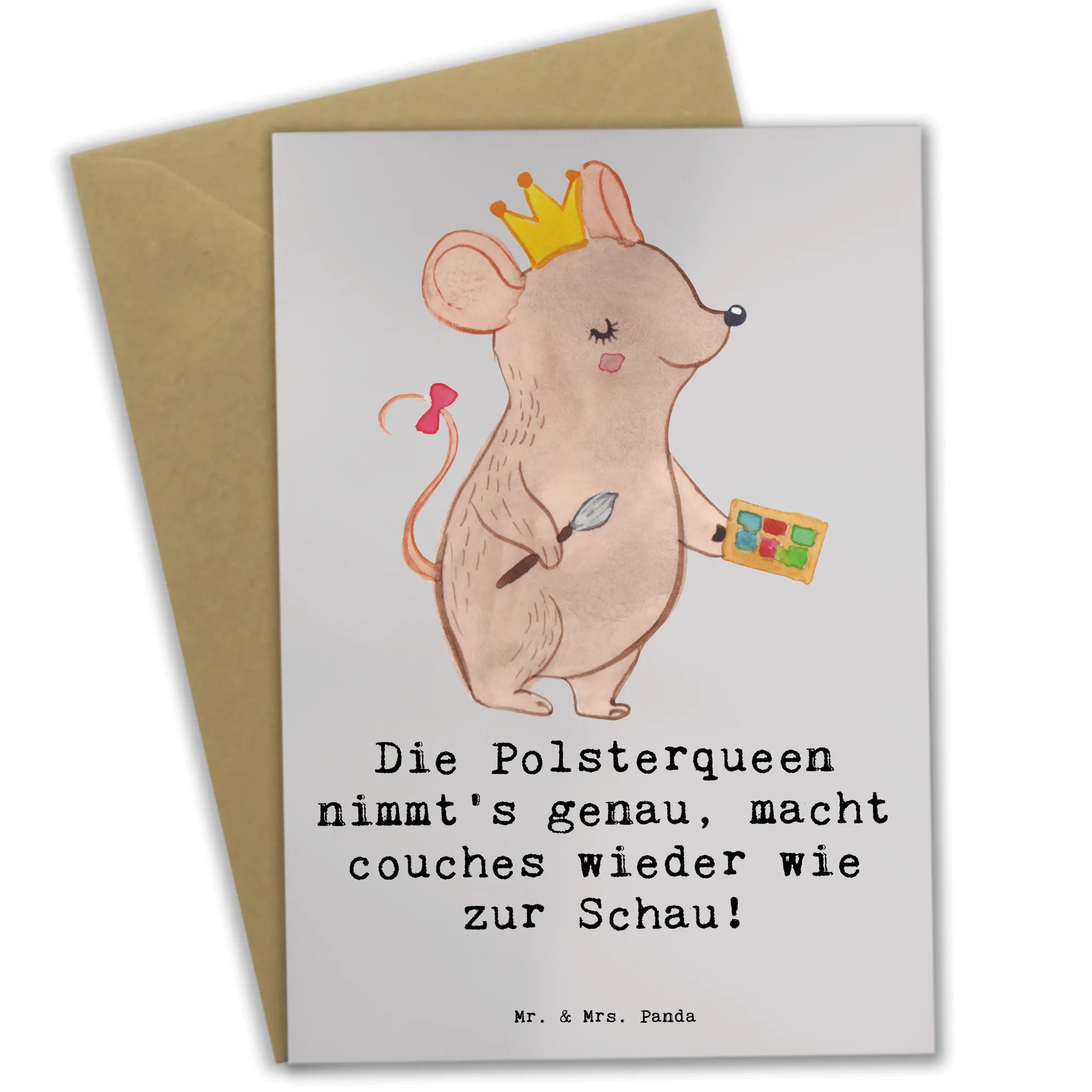 Entdecke die zauberhafte Grußkarte 'Polsterin' von Mr. & Mrs. Panda! Diese liebevoll gestaltete Grußkarte ist das perfekte Geschenk für jeden, der die Kunst der Polsterarbeit zu schätzen weiß.