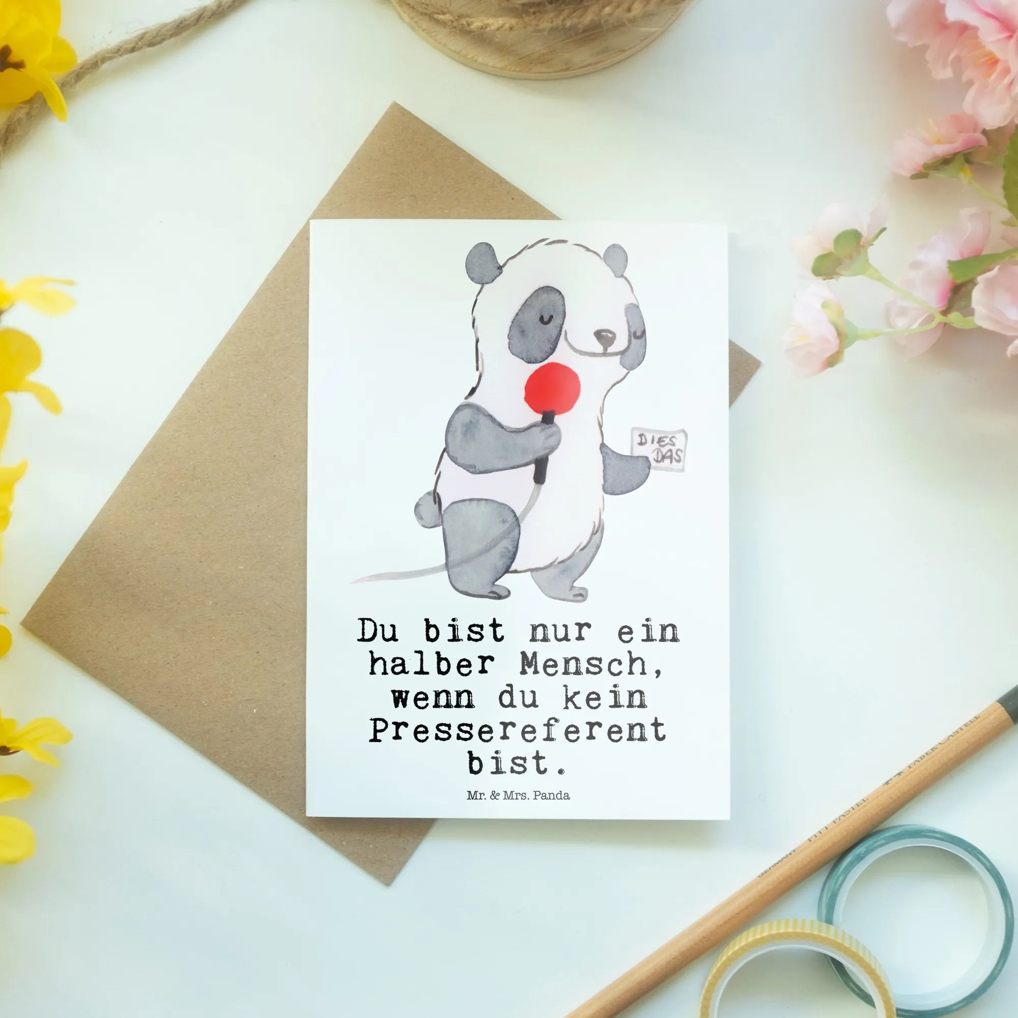 Die humorvolle Aussage "Du bist nur ein halber Mensch, wenn du kein Pressereferent bist." auf der Karte ist nicht nur witzig, sondern zeigt auch Wertschätzung für den Beruf.